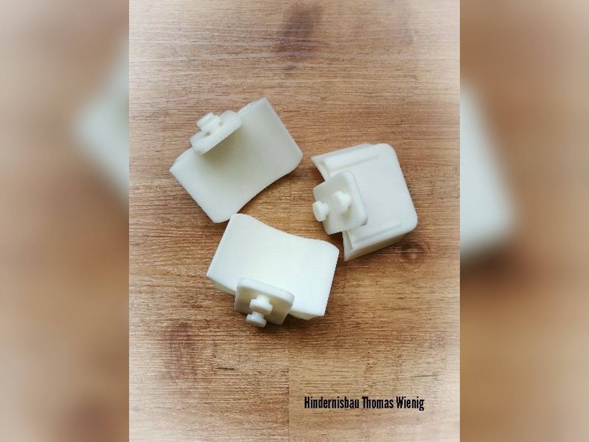 Plastic bar supports Price per piece 2.95-3.15 depending on order quantity + shipping 1-10 pieces --- 3,15 10-20 pieces --- 3,10 20-40 pieces --- 3,05 40-50 pieces --- 3,00 from 50 pieces --- 2,95 universally applicable for all common 24 mm keyhole systems color white support depth 20 mm round support surface for rods, flat side for planks, fences etc. Price per support