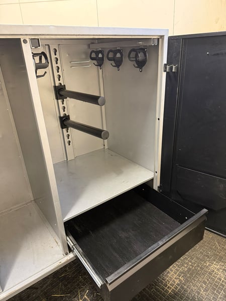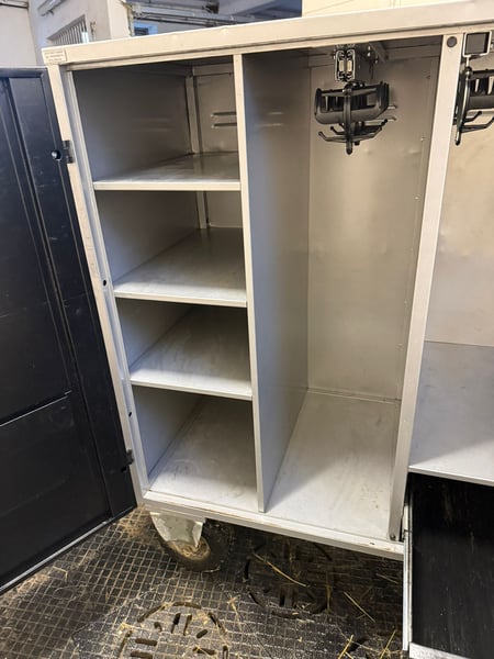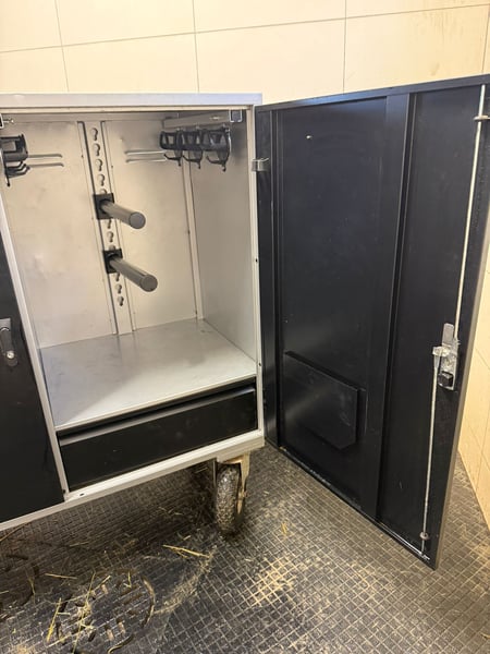 Verkaufe einen hochwertigen ALFAKO Maxi Prestige Turnierschrank in sehr gutem, gepflegtem Zustand. Der Schrank ist ideal für Turniere und bietet durch seine durchdachte Innenaufteilung viel Stauraum für Sattel, Trensen, Zubehör und Pflegeartikel. Ausstattung: • 2 feste Sattelhalter • Mehrere Trensenhalter • Regalfächer für Zubehör • Geräumige Schublade • Abschließbare Türen • Stabile, leichtlaufende Rollen • Seitliche Griffe zum einfachen Rangieren • Zusätzlicher Top-Schrank mit Frontöffnung • Inklusive passender Überzüge (auch für den oberen Schrank) Maße & Gewicht: Hauptschrank: • Höhe: 140,5 cm mit Rädern, 110,5 cm ohne Räder • Breite: 152,5 cm mit Griffen, 135,5 cm ohne Griffe • Tiefe: 63 cm • Gewicht: ca. 125 kg Top-Schrank: • Höhe: 35 cm • Breite: 135,5 cm • Tiefe: 63 cm Der Schrank ist sofort einsatzbereit und bietet optimalen Schutz für deine Ausrüstung – perfekt für Turnierreiter. Leichte Gebrauchsspuren (siehe Fotos), technisch einwandfrei. Besichtigung nach Absprache möglich Preis: 2100 VB Bei Interesse gerne melden!