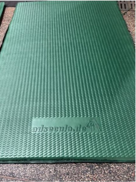 Product Safety: The new EU Regulation 2023/988 does not apply here, as this product has been sold in the EU long before December 13, 2024. Best price in Germany and Austria!!* We offer you a completely new comfort solution for your horses. An original EVA stable mat with dimensions of approximately 183 x 122 cm and a thickness of 44 mm (!!!) at a price of 59.00 EUR per square meter. No typo!! We deliver the mats in green. For our retail price, many of our competitors offer just one square meter with 24/25 mm at this price - please feel free to verify our claim! The mats have a straight edge and are butted together. Due to the weight of the mats, shifting should be avoided. Our mats have the well-known positive properties: - waterproof - joint-friendly - insulating - durable, etc. The hardness of our mats is approximately 60 - 65 shore. Treat your four-legged friends to something special - an EVA mat that certainly not many have in this thickness... Image 2 shows the top side (left) and the bottom side (right) of the 44 mm thick mats. Directly from the importer at prices you expect! With TÜV certificate and test report on the PAK values! Shipping costs: up to 10 m² = 69.00 EUR 11-20 m² = 99.00 EUR Beyond that (up to approx. 80 m²/or 40 mats) = pallet shipping for 175.00 EUR including VAT. We also offer other formats and thicknesses, namely: 183 x 122 cm, 34 mm thick, interlocking on all sides, with edge strips on all 4 sides, 47.00 EUR/m² 183 x 122 cm, 24 mm thick, interlocking on all sides, with edge strips on all 4 sides, 41.00 EUR/m² 100 x 100 cm, 24 mm thick, interlocking on all sides, with edge strips on 2 sides, 35.00 EUR/m² all prices include VAT plus shipping. WE ARE LOOKING FOR RESELLERS AT ATTRACTIVE CONDITIONS! Inquiries will only be answered if you provide your full company name, complete address, and a valid email address. Please only contact us if you can take at least 200 m² in one shipment. * To avoid warnings: based on our own research - errors excepted.