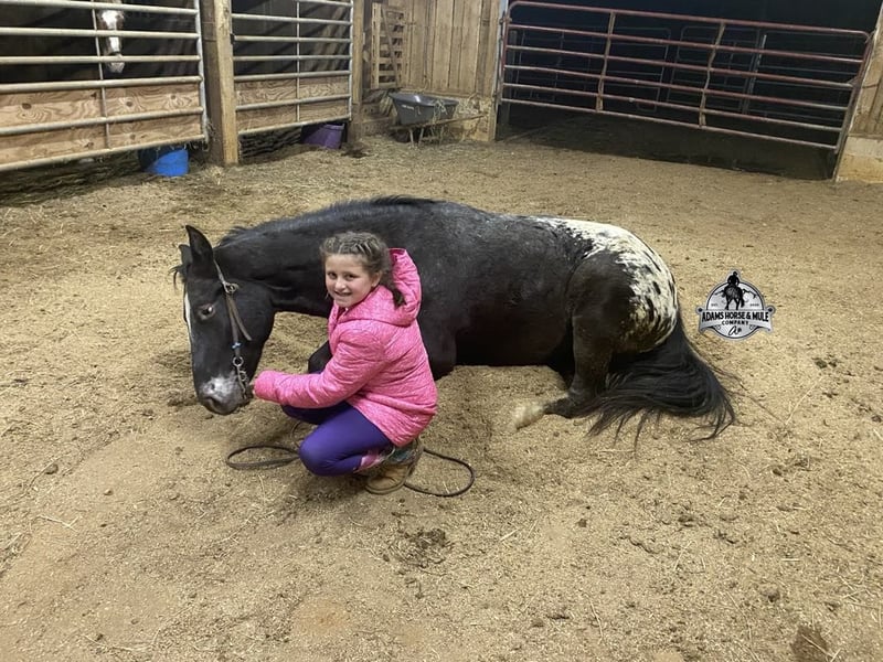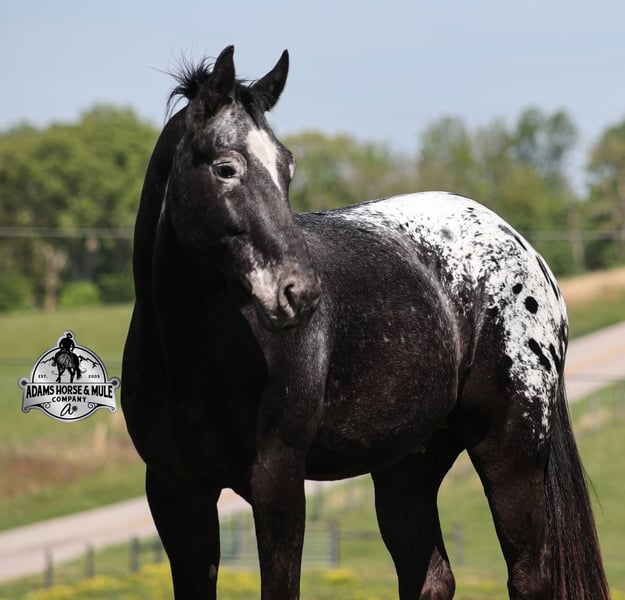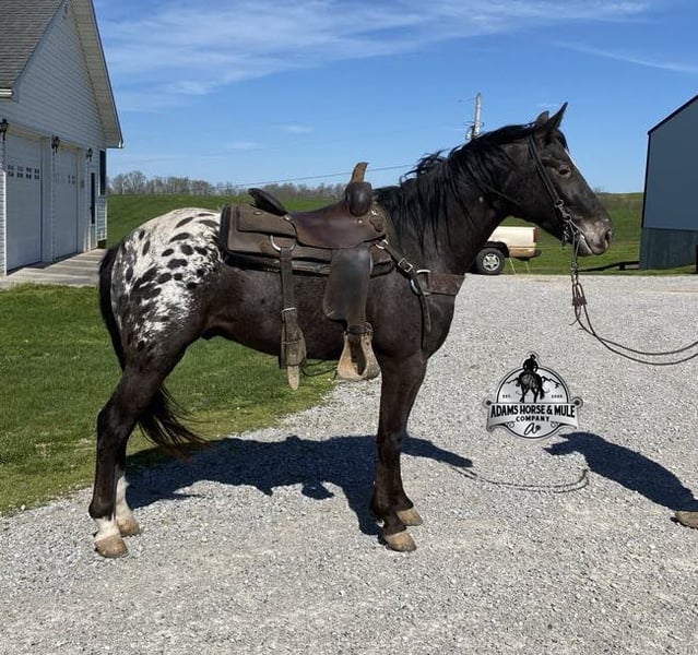 Don’t tell Breyer but one of their horses came to life!!! Dan is the dream horse of all dream horses, the most unique unicorn that you will find! Not only is he a snowcapped appy that is painted to perfection he is also gaited to perfection! History: Dan was raised here locally, and we bought him when he was just a colt. He was started and trained by the best in the business and went on to complete the natural horsemanship program where he learned several tricks (side passing to a mounting block, laying down for mounting and setting on his rump) doing the natural horsemanship program also allowed Dan’s personality to shine as he is a total love bug and is everyone’s best friend! (we included some pics of him when was 2-4 years old on his ad) Now Dan as a 9 year old, is a well built registered Pleasure Saddle Horse gelding that is standing around 15.1hh. He has the good looks, the coloring and (the best part) the mindset that anyone could ask for! Not only does he look cool, he has all of the other boxes checked as well… he is Mr. Personality, as friendly as they come, loves attention and is very calm natured! Dan has been ridden by every member of our family all the way down to our 6 year old and we’ve trail ridden him double. He has been ridden down the highways and he is traffic safe. Dan is great on trails and he will cross creeks, ditches, logs and navigate rough, rocky areas. He has a natural gait that is super smooth, he will lope, has a good stop, he neck reins and backs! He has been exposed to all kinds of wildlife such as deer or turkey or other animals like cows or dogs and will go anywhere that he is asked too. He has been ridden many miles in the mountains of Eastern Kentucky and encountered every obstacle possible on the trail. He has been on several week long camping trips. He hauls well and picket line ties also. He will go up or down even the steepest slopes, across deep creeks, over downed trees, and over all types of rough terrain while still being sure footed. Dan has been ridden at night, lead dogs and been coon hunted off of. He has no bad habits! He truly is the horse of lifetime and we want anyone that is interested in getting to know Dan to just give us a call and everyone is welcome to come see him in person as well! Feel free to call Eric 606-308-2461 with any questions. Go to visit our website for more pics and a video www.AdamsHorseAndMuleCo.com AHAMC has been in the horse business and sold horses over the internet since 2005. We have a long track record of success with hundreds of happy customers. We work hard to match riders with the correct horses and specialize in beginner safe, family friendly horses that have been used and checked out by our family! We can set up transportation anywhere in the US and look forward to working with you.