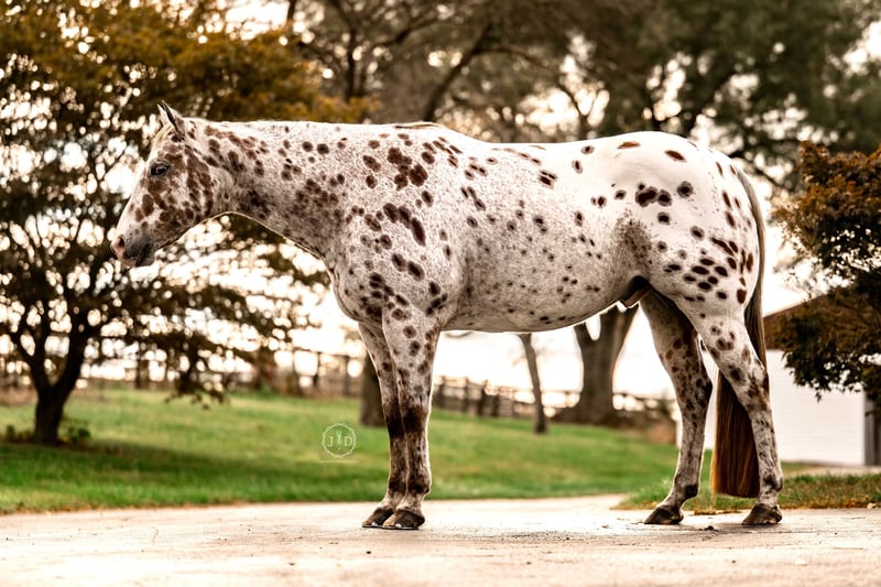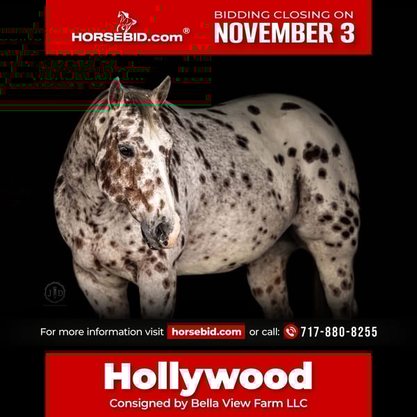 ⚜️𝐓𝐇𝐄 𝐅𝐀𝐋𝐋 𝐇𝐄𝐑𝐈𝐓𝐀𝐆𝐄 𝐂𝐋𝐀𝐒𝐒𝐈𝐂⚜️ Happening now thru MONDAY | NOVEMBER 3rd - Available EXCLUSIVELY on HorseBid's website! For more details and to register visit: www.Horsebid.com CONSIGNOR CONTACT: Bella View Farm LLC 717-880-8255 LOCATION: Grantville, PA BREED: Appaloosa REGISTERED: Yes REGISTERED NAME: Bold En Cowboy Print COLOR: Leopard HEIGHT: 15.3 AGE: 11 GENDER: Gelding “Bold En Cowboy Print” affectionately known as Hollywood in our barn is a GORGEOUS 11yr old Leopard Appaloosa gelding. He sticks 15.3h and has a massive body, lots of bone and huge strong feet!! He’s the type that is not only stunning and a head turner but he is built to last! He is 5 panel Negative. Whether you’re looking to go for a leisurely trail ride, paper chase with friends, or hit the local show pen Hollywood has the temperament, movement & ability to do it all!! Very steady Walk, trot & canter with correct leads in the ring or out on the trail. Stands quietly to mount with a block or from a fence. He’s happy to just go for a long relaxing walk on the trail or down the road but when asked is also happy to kick it up a gear for some trotting, cantering and popping over some jumps on the trail or out at a paper chase. He is traffic & road safe and he truly LOVES riding out!!! I’ve personally trail rode him a lot and I’ve also let my friends and lesson students take him down the road & out on the trails. We have been passed on the road by farm equipment, cars, tractor trailers & have even went through a construction zone without Hollywood blinking an eye!! True 1 finger neck rein whether your riding in a halter, shank bit, snaffle or neck rope!! Running late on time some days?!?! No worries Hollywood will happily ride anywhere in a halter & bareback as well. Lightly started over fences inside and outside of the arena and loves it!! Can take a joke and very brave to the fences. Personally I could see him being an awesome foxhunt horse!! He rides well with company but is also perfectly happy to ride out alone on the road & on the trails, no company required for this confident boy!! Hauls off property like a dream alone or with company, loads and unloads very easily, settles in like a pro at new places & facilities. Will cross tie or hard tie for HOURS without moving a muscle, falls asleep to be clipped (Yes even his ears!), loves to be groomed and bathed, will wear a fake show tail with no complaints. Desensitized To Tarps(you can completely wrap him up in it he won’t care!) balls, farm equipment, traffic. Very respectful and great ground manners. Hollywood even gives “fist bumps” on command!! Started in showmanship & ready to go win in the halter classes!! He is a beautiful mover and could easily excel in the English show pen, ranch, or western dressage. Nice solid big feet, Sound with no past health issues or injuries! No current maintenance & a very easy keeper!! Perfect for the vet & farrier. Will happily live inside or out, Can be out in a mixed herd or does fine being in private turnout alone. He’s very independent under saddle, and in the barn. He could care less whether he is the only horse on the property or if the barn is full of horses. Hollywood came out of a very reputable breeding program and started his undersaddle training there as a youngster, they raved about him & had nothing but wonderful things to say about him!! While his pictures are beautiful, they do not do him justice of just how stunning he is in person!! One’s like him don’t come along often & we know you’ll have a blast with him just like we have!! Sells with a new Coggins & Dental float. Happy to help coordinate shipping! Don’t hesitate to reach out with any questions or to come see him out in person!! Heidi Albright (717)880-8255