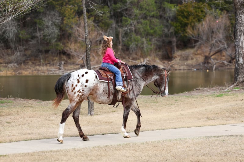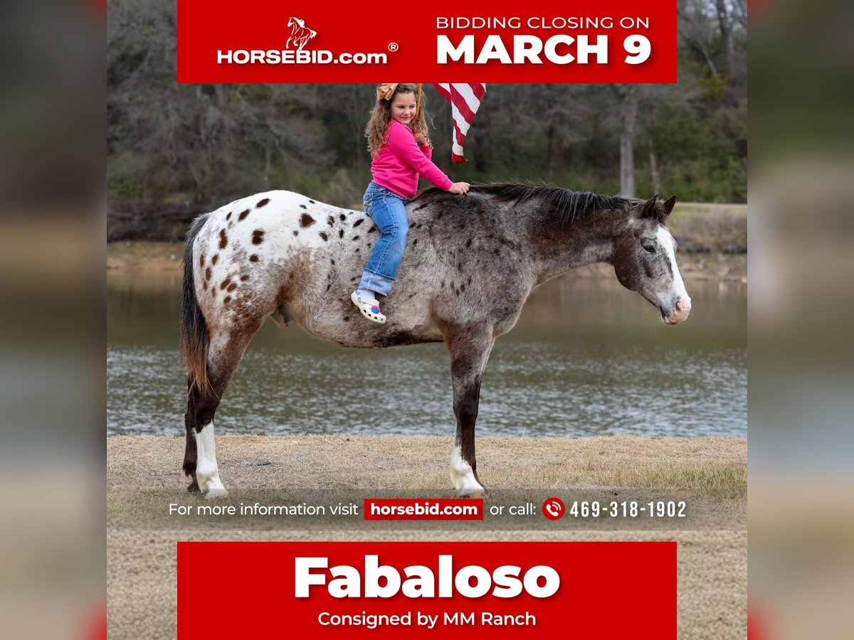 ℳ𝒶𝓇𝒸𝒽 ♦️𝐑𝐈𝐃𝐄𝐑'𝐒 𝐂𝐇𝐎𝐈𝐂𝐄♦️ Happening now thru MONDAY | MARCH 9th - Available EXCLUSIVELY on HorseBid's website! For more details and to register visit: www.Horsebid.com CONSIGNOR CONTACT: MM Ranch 469-318-1902 LOCATION: Forney, TX BREED: Appaloosa REGISTERED: No REGISTERED NAME: Fabaloso COLOR: Appaloosa HEIGHT: 15.1 AGE: 13 GENDER: Gelding Fabaloso aka the Fabulous Appaloosa!!! Yes also named after the best smelling floor cleaner ever. Fabaloso is a 13 year old (verified by a vet) and 15.1 hands tall blanketed Appaloosa. In my opinion a very unique looking and very pretty Appaloosa. But I’m very partial to him! Fabaloso is absolutely gentle kind soul that would be the most ideal horse for first time horse owners. He is so unbelievably kind, soft eyed, straight to the point, no nonsense type of gelding. The kind that is reliable, steady, and seasoned. He is a been there done that type because he has literally been there and done everything. He has been ridden across mountain ranges, hunted off of, and has packed gear through the great backcountry. He crosses water, logs, bridges, brush, and terrain of every kind like he's done it a thousand time. Where most horses spook or hesitate around traffic, busy roads, trains, crowds of people, Fabaloso doesn't even blink an eye at it. 🚂 We took him to town and watched the train pass, he stood right bedside it and wasn't bothered by it with a 6 yr old on his back. How many horses do you know will do that?!?! Have you ever stood beside a moving train? I’m talking like 5 ft from it and felt the wind rushing by you and heard the loud noses it makes. It will make your heart race even as a human. He rode right next to out with a very timid little 6 yr old on his back. Absolutely didn’t even faze him at all. 🚂 This gelding is as solid in town as he is on the trails. Ride him right down the street with cars buzzing past, trucks rolling by, and everyday commotion with confidence knowing he will not spook. He's been down Main Street, through neighborhoods, and into busy areas without a single worry. Fabaloso is fun and easy to ride. That old fashioned broke type. You can ride him with a string around his neck. He is light and responsive. Absolutely does everything you ask him to do without hesitation. Fabaloso is an in-your-pocket, meet-you-at-the-gate kind of gelding. He's soft, gentle, and genuinely enjoys people. You can saddle him cold, saddle him warm, saddle him after time off—he stays the same, broke and honest. Rides bareback. He rides in a halter, hackamore, or bit, it doesn't matter to him. Even if you are a complete beginner, you can ride him and enjoy him. Absolutely safe with no bad habits whatsoever. I can't say that enough. It doesn't matter if you have never owned a horse before. You can learn on this one. You can build your confidence. But if you are an advanced rider looking for safe you can enjoy him too. Stall him or turn him out-either way, he's content and an easy keeper. Fabaloso is the full package with the kind of temperament people spend years searching for. If you want a bombproof gelding that the whole family can ride, in the mountains, on the streets, work the ranch, and babysit the kids, one that you know without a shadow of a doubt that they are safe —this is the one. Horses with this kind of experience and mileage don't come up for grabs often. Fabaloso is a very easy keeper. Requires no maintenance of any kind. He can go bare foot or put shoes on him. He sells 100% sounds with no issues. He did have a pre vet evaluation done included in the pictures. If you have anymore questions about him feel free to call. We would love to visit with you about him. We can help you arrange fast affordable shipping anywhere. He is up to date on all vaccinations, worming, had his teeth checked, feet. He is ready to go to his new home.