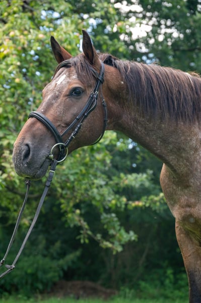 Spirit to 13-year-old Appaloosa-Arabian mix. He is 16.1 hands tall and well-built. Spirit is a clever gelding who loves activity in all forms. He enjoys trail riding, approaching boldly, but can also be ridden from behind or in the middle. Spirit has a lot of energy and needs to be exercised and challenged daily. In dressage, he is at A/L level. Lateral movements in walk and trot are available upon request. When given correct aids, he can move beautifully in a collected frame and presents a very elegant appearance. Spirit is also familiar with pole work and jumping, often taking small obstacles confidently and, of course, performing at his best over higher jumps. For experienced jumpers, he is a joy to ride, as he has the willingness to clear the fences. He is a horse that adapts very well to the rider's energy and can be ridden accordingly. He prefers to be guided and framed by rider aids. We purchased Spirit privately three years ago for our riding school. He has no issues with changing riders or different riding levels. We often use him in dressage lessons and for trail rides. Even beginners, who ride in pairs at a walk, find him very well-behaved and eager to please. For gallop and jumping beginners, he is unfortunately too energetic and enthusiastic. That is why we are now looking for a more suitable home for him. Our riding operation has been shifting towards beginner instruction since this year, and we notice that Spirit is underchallenged and has much more potential than we need. Therefore, we want to give him the chance to find a person who can challenge and develop him while he is still young. Spirit is kept with us in a mixed herd and is very compatible with all horses. He is playful and friendly, making friends with everyone without being dominant. We feed Spirit with haylage, as he tends to cough with our hay. The previous owners did not have any issues with coughing. In summer, Spirit wears a mask permanently due to his sensitive Appaloosa eyes, which helps protect him from UV rays. In spring, autumn, and winter, he does not wear a mask. We can still imagine Spirit in a horse-friendly riding school with proper, species-appropriate care. Since we are advocates of riding without auxiliary bits, we would only consider riding schools that share this philosophy. We see Spirit fitting very well into advanced, gallop-secure lessons, both in dressage and jumping. Further information and photos of our riding club can be found at www.reitclub-kronberg.de We are also on Instagram: https://www.instagram.com/reitclub.kronberg?utm_source=ig_web_button_share_sheet&igsh=ZDNlZDc0MzIxNw==