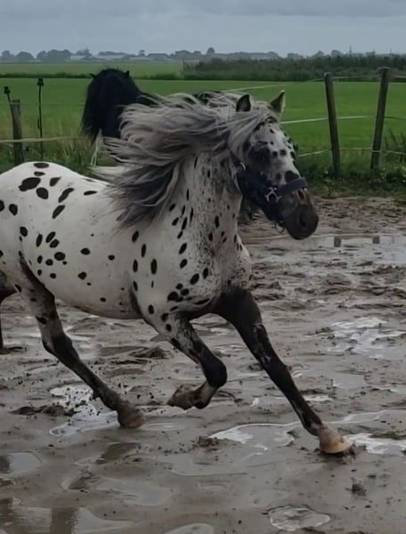 Geweldig mooie appaloosa ruin geboren maart 2024 dus 1.5 jaar Mooie ruime gangen en geweldige lange manen Echt een blikvanger Zal zeker niet misstaan voor een karretje of als kinder pony in de ring