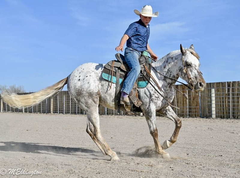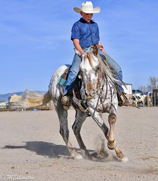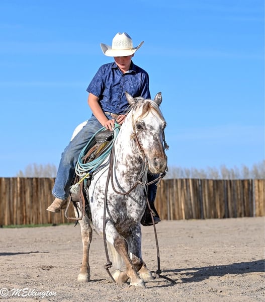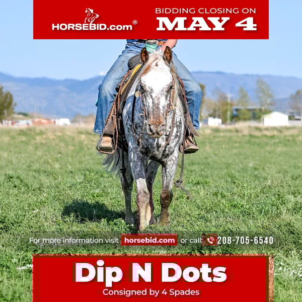 ▪️▫️◾️𝐭𝐡𝐞 𝑴𝒂𝒚 𝐒𝐞𝐥𝐞𝐜𝐭◾️▫️▪️ Happening now thru MONDAY | MAY 4th - Available EXCLUSIVELY on HorseBid's website! For more details and to register visit: www.Horsebid.com CONSIGNOR CONTACT: 4 Spades 208-705-6540 LOCATION: Rigby, ID BREED: Appaloosa REGISTERED: No COLOR: Appaloosa HEIGHT: 14 AGE: 5 GENDER: Gelding Dip N Dots — The Kind You Don’t Find Twice Dip N Dots is a standout 5-year-old Appaloosa gelding standing a solid 14 hands tall, with all the chrome, a long flowing mane and tail, and a look that will flat turn heads wherever he goes. He is truly one of a kind—you won’t find another just like him. But he’s not just a pretty face—this gelding is broke the right way. Dip N Dots is one-handed broke, neck reins with ease, will spin around, and has a big, eye-catching stop. He’s soft in the bridle, willing, and stays consistent every ride, making him especially rewarding for a confident rider. To top it off, he’s got the extras everyone loves—he will bow and lay down on cue, adding a fun and impressive touch to an already solid foundation. Dip N Dots really shines in the obstacle course. He confidently handles the 6-foot teeter totter, cowboy curtain, noodles, bridges, and just about anything you want to point him at. He’s honest, willing, and takes pride in his work. He has also really taken to the Heel-O-Matic, adding even more versatility to his resume. Outside the arena, he’s just as dependable. He’s been trail ridden in the mountains near West Yellowstone, where he’s seen wildlife and handled it all with ease—including listening to elk bugle. He’s the kind you can saddle up and go enjoy with confidence. Our 13-year-old son absolutely loves to rope and ride Dip N Dots, and he has proven himself to be a fun, capable gelding to have around. Dip N Dots is the total package—flashy, broke, talented, and versatile. Whether you want to take him to the roping pen, the trail, the obstacles, or simply enjoy owning a standout horse, he’s ready to go any direction you choose. Opportunities like this don’t come around often—don’t miss your chance to own a truly special gelding.