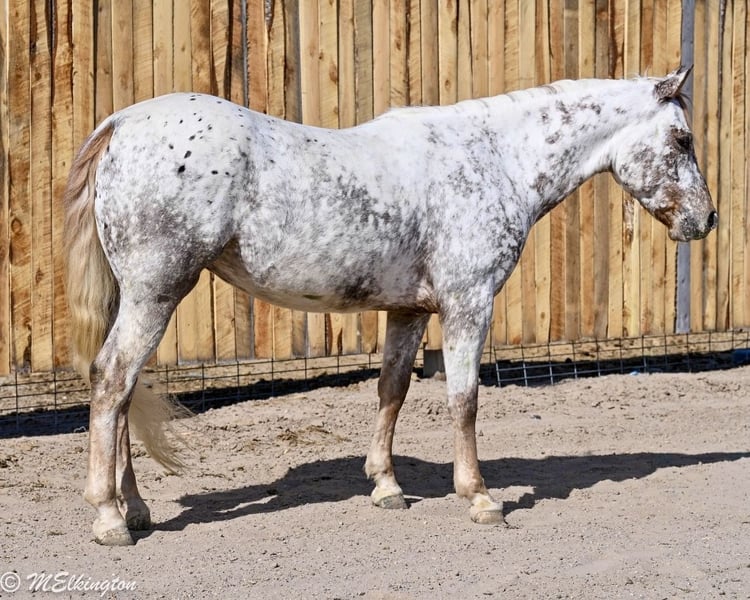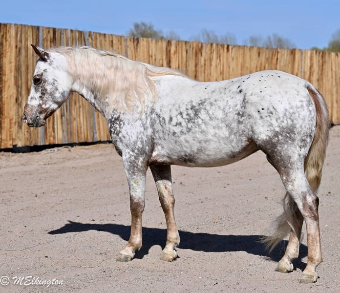 Dip N Dots, un potro de 5 años, de 14 manos, de raza Appaloosa