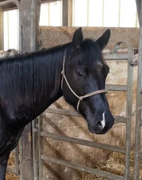 Dark Kiss *Smokey* Ist ein im April 2021 geborener rein schwarzer Appaloosa Wallach ohne Charakteristika Er ist seit Mai diesen Jahres in Profi Ausbildung und Beritt Er ist geritten, brav im Handling, geht gerne ins Gelände und sogar schwimmen EWU Jungpferde eingezahlt Performance Permit Die Geschwister von diesem wirklich schönen schwarzen Burschen sind erfolgreich in Allaround und Pleasure unterwegs . Ansehen, Probereiten nach Absprache möglich Standort: 57647 Enspel/Westerwald Preis auf Anfrsge