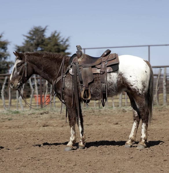 ℳ𝒶𝓇𝒸𝒽 ♦️𝐑𝐈𝐃𝐄𝐑'𝐒 𝐂𝐇𝐎𝐈𝐂𝐄♦️ Happening now thru MONDAY | MARCH 9th - Available EXCLUSIVELY on HorseBid's website! For more details and to register visit: www.Horsebid.com CONSIGNOR CONTACT: Real Deal Horses 406-570-4936 LOCATION: Ripley, OK BREED: Appaloosa REGISTERED: No REGISTERED NAME: Tony COLOR: Chestnut HEIGHT: 14.1 AGE: 6 GENDER: Gelding Tony is a 14.1 hand Appaloosa gelding with the coolest markings! Eye catching leg patterns and those big polka dots across his hip that make him stand out in any crowd. He’s a handsome, well built gelding. Tony is gentle, quiet, and extremely willing. He’s been ridden extensively on the trails, through town and traffic, and around dogs, goats, and pigs. Tony is a handle tool on the ranch. Sorting, gathering, roping, doctoring, you name it. Will side pass beautifully to open and shut gates, has a nice one hand neck rein, and the cutest rocking chair lope you’ve ever seen. Stands patiently for the farrier, and is great to saddle, tie, load, and bathe. He has excellent ground manners and is truly a pleasure to have around the barn. He’s not chargy, he’ll step up and go to work when asked, or slow down and take care of someone who’s still learning. He’s confident with tarps, ropes, balls, and all the “circus” activities. Whether you’re looking for a dependable ranch horse, trail partner, 4H mount, rope or gymkhana prospect, Tony is the kind that checks the boxes. Don’t miss out on this good minded, versatile gelding. Call Trevor at 406-570-4936 to schedule a time to come ride him or arrange a PPE, Nationwide transportation can be arranged.