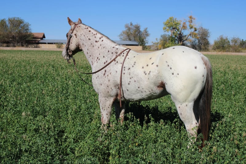 ONLINE AUCTION Place your bids at www.PlatinumEquineAuction.com Starting Bid $3500 Auction ends December 8th, 2024 Need a new saddle? Check out White Rock Saddles on our website or Facebook! Mr. Beans Is a fancy 5 yr old Apaloosa gelding, he stands 15’1 and will stand out anywhere you go. He’s been a joy to have in our program we’ve done a little bit of everything with him . He’s had lots of outside miles in rocky country and sandy hills, he’s extremely sure footed and knows how to travel in tough terrain. We also do a lot of arena riding, from roping the smarty out of the head box or loping circles in both directions. He knows his leads and will pick them up off your leg pressure. Beans is a super smooth traveler and is a comfortable ride. Beans likes party’s he’s been the horse we bring out for the birthday party’s to lead the kids around on. He’s very personable and likes treats and being loved on. We’ve used him on the ranch as well pushing cows from one pasture to another or bringing up roping steers during the practices. He’s an all around safe gelding that would fit anyones family or program. Mr beans is easy to catch, saddle, shoe, load, unload and ties. He will ride through water, rides in traffic, good with dogs, bikes, other animals. He’s pretty laid back and easy going, He’ll be a a standout anywhere he goes. He is 100% sound . Please call for any questions you may have about Mr.beans thank you! Lauren Lara 915-474-5453 Located in El Paso, TX. ONLINE AUCTION Place your bids at www.PlatinumEquineAuction.com Starting Bid $3500 Auction ends December 8th, 2024 Need a new saddle? Check out White Rock Saddles on our website or Facebook!