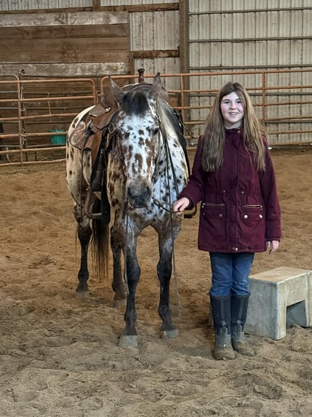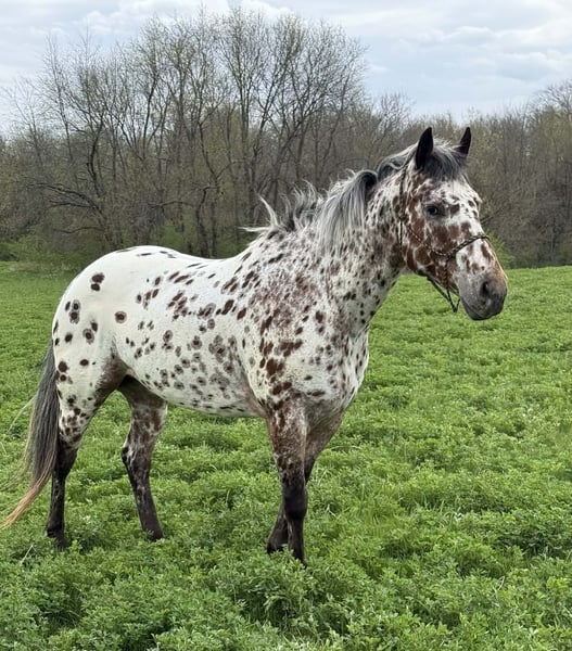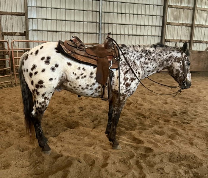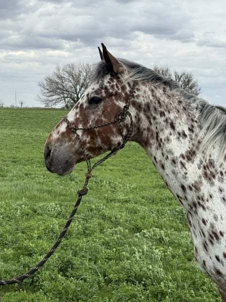 Caballo gelding de 8 años, amable, dispuesto y con experiencia, de raza Appaloosa leopardo.