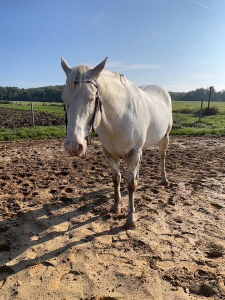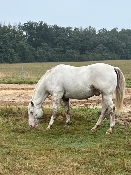 FH Special Jasper ist ein bildhübscher Appaloosa Wallach, geboren im Oktober 2018, mit einer außergewöhnlichen Few-Spot-Farbe und einem Stockmaß von ca. 154 cm. Er überzeugt nicht nur durch seine besondere Optik, sondern auch durch ein korrektes Gebäude, ein solides, kräftiges Fundament sowie eine kompakte und gut bemuskelte Erscheinung mit starken Knochen. Der Wallach ist barhuf, gesund und hatte bisher keinerlei Erkrankungen. Durch seine Eltern ist er 5-Panel n/n getestet. Der Umgang mit Tierarzt und Hufschmied ist ihm bestens vertraut, ebenso wie die regelmäßige Entwurmung. Jasper kennt sowohl Offenstall- als auch Boxenhaltung und ist im gemischten Herdenverband aufgewachsen. Er zeigt sich im Alltag sehr unkompliziert und ist verladefromm. Besonders hervorzuheben ist sein liebevoller Charakter. Der Wallach ist sehr menschenbezogen, ruhig, brav und ausgeglichen. Dabei ist er stets bemüht, alles richtig zu machen, lernt schnell und bringt ein angenehmes, ausgeglichenes Temperament mit. Unter dem Sattel zeigt Jasper sich zuverlässig und überzeugt mit weichen, angenehmen Grundgangarten. Er geht brav alleine ins Gelände und eignet sich dadurch ideal für Anfänger sowie Wiedereinsteiger. Jasper verfügt über eine solide Westernausbildung, wurde jedoch bisher nicht auf Turnieren vorgestellt. Seine gute Abstammung sowie sein "Charakter aus Gold" machen ihn zu einem tollen Freizeitpartner für viele schöne und entspannte Stunden im Sattel. Die Papiere des AphC liegen selbstverständlich vor.