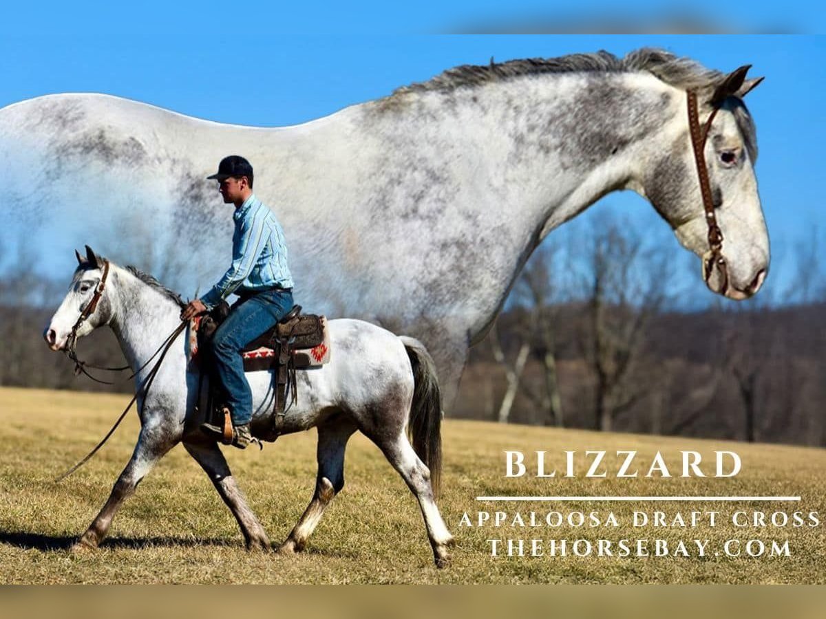 OPEN BIDDING ON THEHORSEBAY,COM. SALE ENDS ON 03/19. More information is available on the website, including an UTD vet inspection, Coggins, video, images, and the owner's contact information to ask questions, request information, or make arrangements to come to visit. Blizzard is a very unique, rare colored blue varnished roan appaloosa. He is out of an appaloosa stallion and a quarter horse/draft mare. He is 8 years old and stands 15 hands tall, with a good stout bone and foot coming from the quarter draft, which gives him a strong build. He also gets his athletic ability from the quarterhorse in him. I got Blizzard from the gentleman who raised him in southern Ohio about 4 months ago. He has been trail-ridden, taken on overnight camping trips, and used around the farm to check cattle. Meanwhile, in the time that I owned him, I trail-ridden him a lot, and he is no stranger to the trails. He crosses water, ditches, and logs and goes up and down steep hills. I’ve had him on the highways and in town; traffic does not bother him. I have ridden Blizzard in the indoor arena as well as the outdoor arena. Blizzard has become handy broke with a one-hand neck rein, a good stop, and backup. He is really yielding to leg pressure and has a very comfortable jog and a nice, easy lope to sit. Blizzard is quiet and clean in the stalls, an easy keeper, and requires no maintenance. He gets along with other horses in the field and is easy to catch. Blizzard is very seasoned in the Western world, but he could even do great in the English world, doing small jumps. I can arrange shipping anywhere in the US. Call or text with any questions!