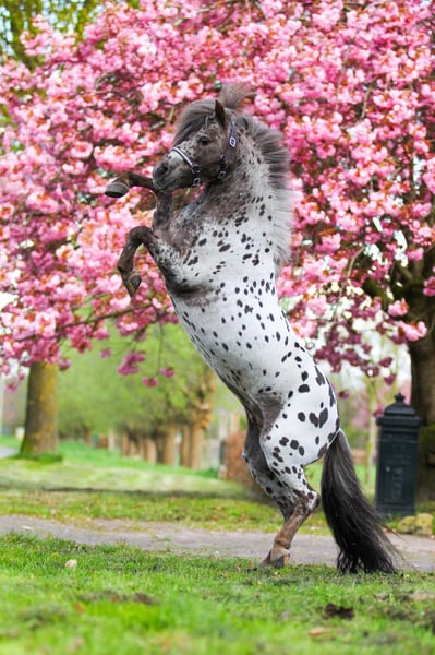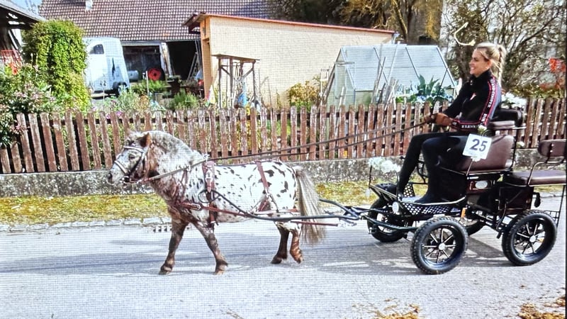 Absolutely no urgent sale! Only to a perfect home! Name: Simba Breed: Appaloosa Mini Shetland Pony Gender: Stallion Date of Birth: May 14, 2008 Height: 87 cm Color: Tiger Spotted Simba is an extraordinary Appaloosa Mini Shetty stallion with a big heart, strong nerves, and impressive talents. He is in excellent health, barefoot, experienced in driving, and has been tested in parades – a true reliable pony stallion who remains calm in any situation. He has been ridden by children, is well-behaved in harness (reliably pulls lighter loads), and is familiar with various environments. Simba performs numerous circus tricks such as: • Rearing • Lying down • Bowing • Piaffe • Spanish Walk & Spanish Salute • Sitting • Capriole A true show talent who works and performs with joy! Simba currently lives in a small, harmonious herd of geldings and shows himself to be very social and compatible there. It is especially important to us that he moves to a new home together with his best friend Silvester. The two are a well-rehearsed team and are very attached to each other. ❤️ Simba is looking for a loving, supportive home where he can remain a stallion – this will also be specified in the contract. Only to experienced and caring hands!