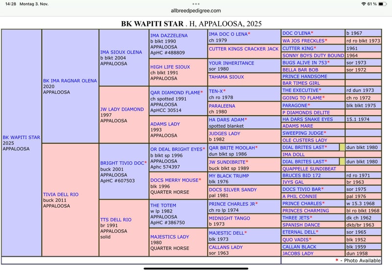 Wir suchen ein neues Zuhause für unseren wunderschönen Appaloosa Hengst. BK WAPITI STAR **Merkmale:** - **Rasse:** Appaloosa - **Geschlecht:** Hengst - **Geburtsjahr:** 2025 - **Farbe: Buckskin - **Stockmaß:** 155 cm - **Reitweise:** Western Dieser charmante Hengst besticht durch sein freundliches Wesen und seine hervorragenden Bewegungen. Er ist bestens geeignet für Westernreiten und hat das Potenzial, ein treuer Partner für erfahrene Reiter zu werden. Vater ist BK Ragnar Olena , Mutter : Tivia Dell Rio Er ist gut erzogen, kennt die Grundlagen Fohlen ABC Wir wünschen uns für ihn ein liebevolles Zuhause, in dem er artgerecht gehalten wird und die Aufmerksamkeit bekommt, die er verdient. Anbei: COR und Equitenpass vom APHCG Bei Interesse oder weiteren Fragen freuen wir uns über Ihre Nachricht!
