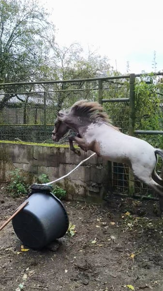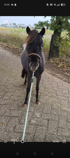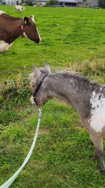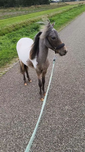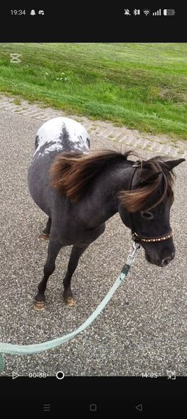 Alex Alex is een luxe Appaloosa mini hengst van 2 jaar oud met NAS papier. Hij is een hele lieve en nuchtere pony die graag en snel leert. Hij kan een leuk sprongetje maken en is bomproof, en loopt ook al stukjes aan de lange lijnen. Alex kan zonder problemen langere tijd vaststaan, ook zonder toezicht. Hij is momenteel ongeveer 95 cm en groeit nog. Staat mooi hoog en correct op de benen en beschikt over ruime, goede gangen. Alex is goed gesocialiseerd met honden, katten, koeien, kippen en kinderen, en is daardoor zeer geschikt als kinderpony. Hij vertoont geen hengstengedrag en loopt hier probleemloos in een kudde met zowel hengsten als merries. Bonny Bonny is Alex half broertje en ook een luxe Appaloosa mini hengst van 2 jaar oud met NAS papier. Hij is lief, nieuwsgierig en leert snel. Ook hij kan netjes en veilig langere tijd vaststaan zonder toezicht. Hij is momenteel ongeveer 85 cm en groeit nog. Net als Alex staat hij correct op de benen en heeft hij ruime gangen. Bonny is goed gesocialiseerd met honden, katten, kippen, koeien en kinderen en is daardoor ook zeer geschikt als kinderpony. Hij loopt in de kudde samen met andere paarden. Bonny zijn we nu ook mega lange lijnen bezig Beide staan netjes stil bij de hoefsmid loopen allebij makkelijk de trailer op. Voor vraagen stuur gerust een berichtje. Ps €950