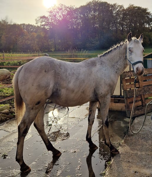 Zum Verkauf steht ein Few Spot Junghengst mit dem Namen: BK Legacy of Geronimo. BK Legacy of Geronimo wurde auf der Zuchtschau 2023 prämiert, LG I, Wertnote: 9,3. Braun LP/LP. Geschätztes Endmass 151 cm. "Ronny" ist sehr Menschen bezogen Junghengst, kennt das Fohlen ABC, Bodenarbeit und wurde mit Pad anlongiert. Er geht an der Hand entspannt ins Gelände und zeigt sich in neuen Situationen sehr souverän. Sein Vater ist Ima Sioux Olena, ein gekörter Hengst und seine Mutter ist Roxys Lady in Dark, ihre gesamte Nachzucht ist prämiert. Also ein sehr interessanter Junghengst für Zucht und Sport aber auch als toller Freizeitpartner. Geimpft und Entwurmt. Dabei: COR und Equitenpass vom APHCG. Wegen Änderungen der Lebensumstände wird der Junghengst unter Wert verkauft!