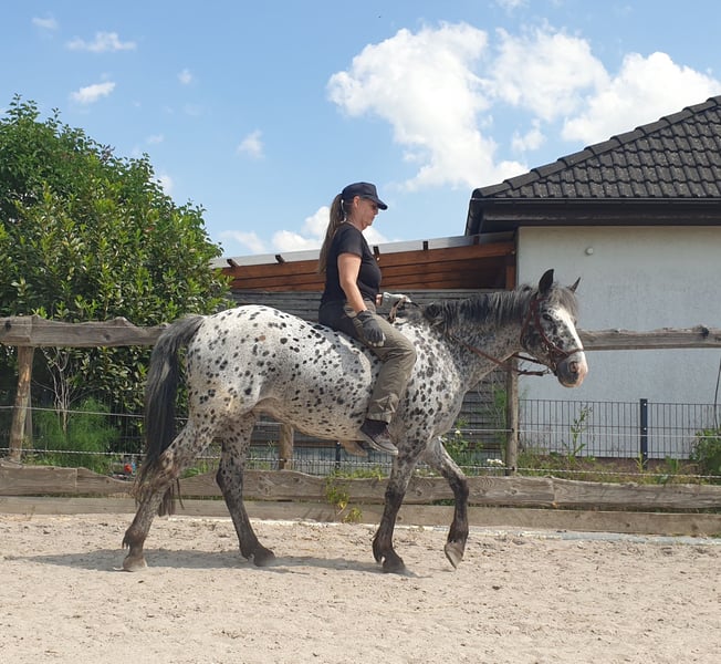 Kates a Star, conocida como Kati, es descendiente de "Toby 1", por lo que proviene de la famosa línea Toby. Durante el tiempo en que no estuvo en estado de gestación y no tuvo un potro a su lado, siempre fue montada. Kate es una madre excelente y ahora está nuevamente preñada de Buns Final Chief. Su último potro (ver imágenes) es un buckskin; antes de eso, tuvo un schabrackentiger y antes de eso un tigerschecke. Por lo tanto, transmite - dependiendo del semental - colorido. Tiene cascos muy buenos, es tranquila para el herrador y para cargar, y es muy agradable en el trato. A partir de las experiencias en el trabajo en el suelo con ella, se puede decir que es inteligente, aprende rápido y es cooperativa. Debo separarme de ella por motivos de edad y salud, y solo la entregaré a un buen lugar. Kate nunca ha tenido problemas desde que está conmigo; esto también se aplica al parto y a sus potros (con gusto puedo facilitar un contacto con su veterinario).