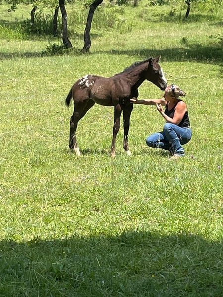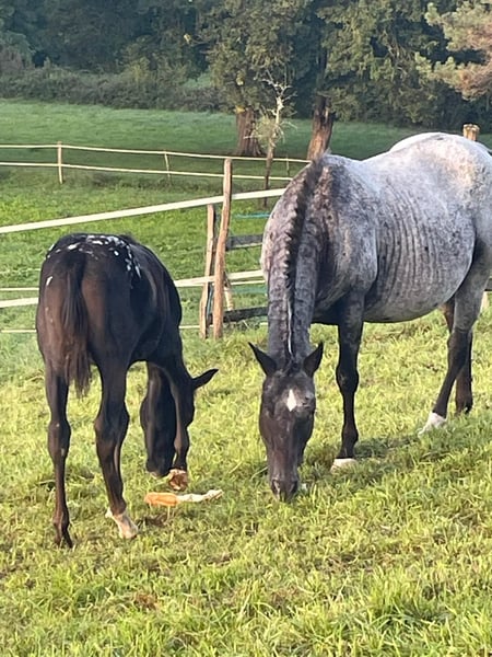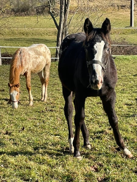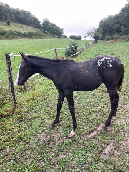 Die kleine, am 27. April 2025 geborene Little Moon Straw Rock begeistert bereits jetzt mit ihrem atemberaubenden schwarzen Fell und ihrem außergewöhnlichen Temperament. Aus einer etablierten Straw-Linie stammend, vereint diese Appaloosa-Stute die besten Eigenschaften beider Eltern. Ihr Vater, Executive Straw Boy, und ihre Mutter, Ima Straw Rock Again, vererben ihr eine hochwertige Abstammung – ein Garant für Qualität für alle Pferdeliebhaber, die die Bedeutung der Genetik für die Zucht eines vielseitigen und zuverlässigen Pferdes zu schätzen wissen. Was an Little Moon sofort auffällt, ist ihr bemerkenswert ruhiges Wesen für eine so junge Stute. Von Natur aus menschenbezogen, strahlt sie vom ersten Moment an Vertrauen aus. Neugierig, umgänglich und lernfähig, verspricht sie ihrem neuen Besitzer eine angenehme und unkomplizierte Zusammenarbeit. Ihre natürlichen Talente deuten auf eine vielseitige Zukunft hin: Westernreiten, Bergwandern, Rancharbeit oder einfach gemütliche Ausritte – all diese Disziplinen scheinen wie für sie geschaffen. Sie zeigt zudem großes Zuchtpotenzial und ist daher eine besonders wertvolle Investition für qualitätsorientierte Züchter. Für 4.500 € bietet Little Moon Straw Rock eine seltene Gelegenheit, eine Stute mit einwandfreiem Temperament, exzellenter Genetik und vielfältigem Potenzial zu erwerben. Für weitere Informationen, Fotos und Videos kontaktieren Sie uns gerne. Ein Videogespräch ist ebenfalls möglich, um sie aus der Ferne kennenzulernen.