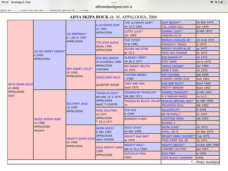Adya Skipa Rock es una yegua Appaloosa galardonada por el APHCG. Nació en 2006. En 2024, tuvo una cría de belleza excepcional, también premiada por el APHCG. Está gestante para 2026 de Ima Sioux Olena, un semental aprobado y hijo de Ima Dazzelena. Adya también es una excelente yegua de monta.