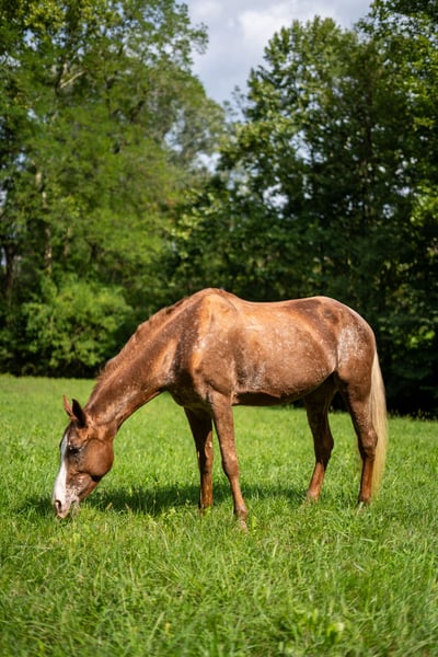 Kobyła mieszaniec Quarter Horse x Appaloosa. 11 lat – 1,50 m w kłębie. Nadaje się do spacerów i trekkingu, także wymagających, zarówno w pojedynkę, jak i w grupie. Łatwa w obsłudze i godna zaufania.