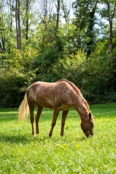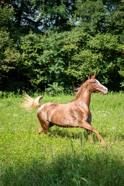 Mare crossbreed Quarter Horse x Appaloosa. 11 years old – 1.50 m at the withers. Suitable for walks and even challenging trekking, both alone and in a group. Easy to handle and reliable.