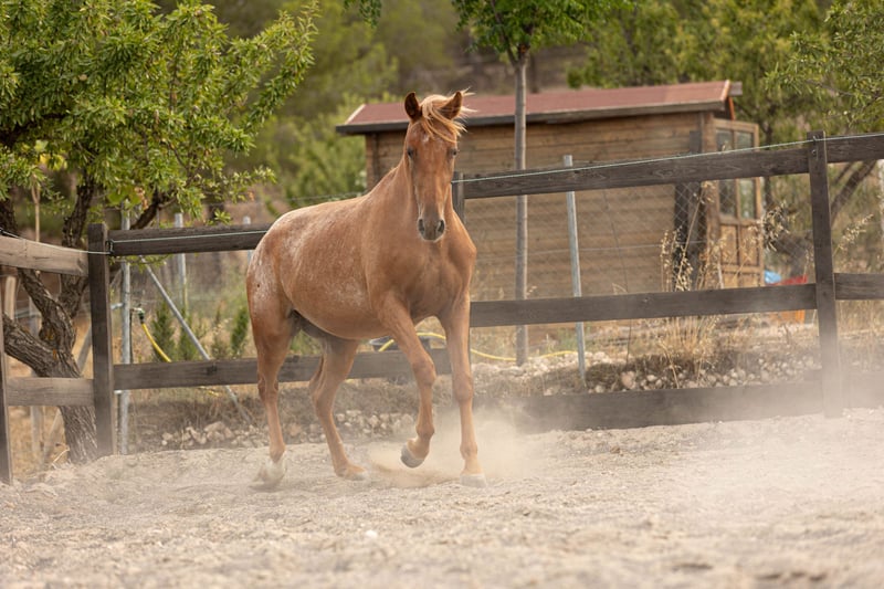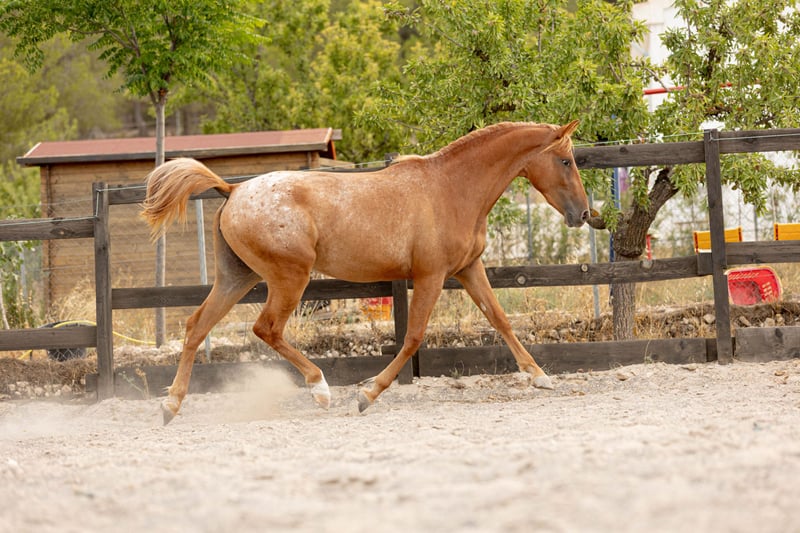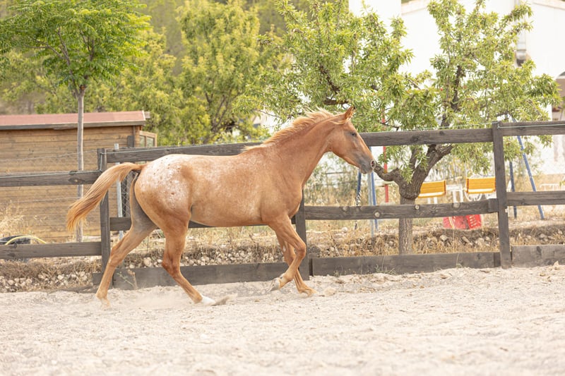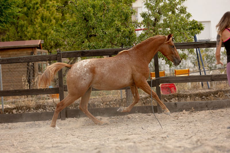 ✨ ARIZONA - Potra con alma de compañera y un corazón enorme ✨ Te presentamos a Arizona, una joven yegua nacida en marzo de 2023, cruce de Appaloosa con sangre KWPN y Española. Con pasaporte español y posibilidad de inscripción en el registro auxiliar de ANCADES (Caballo de Deporte Español). Arizona destaca por su carácter profundamente humano. Es extremadamente cariñosa, curiosa, cercana, y le encanta estar con las personas. Le gusta ser el centro de atención y disfruta de la interacción constante, siempre con esa energía positiva que conquista desde el primer momento. Está empezando a explorar el mundo de manera suave y respetuosa. Conoce los básicos: • Se deja cepillar y duchar sin problema • Da correctamente los cascos • Se comporta perfectamente con el podólogo equino (visita cada 6 semanas) • Está desparasitada y vacunada • Se ata con tranquilidad • Sabe dar cuerda y escucha los comandos a la voz. • Sale a pasear del ramal por el bosque Como todos nuestros caballos, Arizona ha sido criada en un entorno donde priorizamos el respeto, la confianza y el bienestar emocional. Nuestra doma comienza desde el suelo, creando un vínculo real entre caballo y persona. Alimentación natural y completa: • Heno a libre disposición 24h • Alfalfa • Cobs de hierbas de los Alpes • Mash • Mezcla de copos de cereales variados Su pelaje rojo tostado y sus crines rubias le dan una belleza muy especial, pero lo que realmente enamora es su forma de mirar, su cercanía, y sus ganas de compartir tiempo contigo. Arizona es perfecta para alguien que quiera comenzar una historia desde el principio: con calma, con amor, y con la ilusión de construir una relación sana y profunda. Si quieres conocerla mejor, contáctanos por teléfono o WhatsApp. Estaremos encantados de darte más información, fotos o vídeos