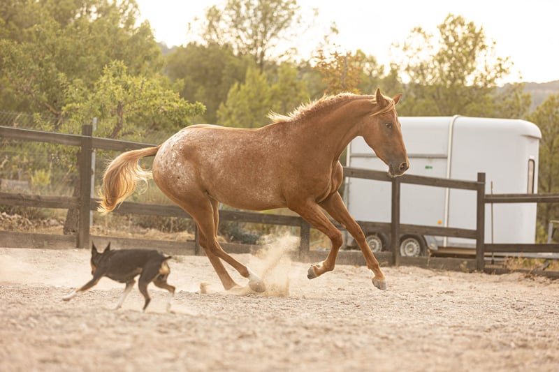 ✨ ARIZONA – Jeune pouliche attachante et pleine de cœur ✨ Voici ARIZONA, une jeune pouliche née en mars 2023, croisée Appaloosa avec des origines KWPN et espagnoles. Elle possède un passeport espagnol et peut être inscrite au registre auxiliaire de l’ANCADES (Cheval de sport espagnol). Arizona se distingue par son caractère extrêmement proche de l’humain. Très affectueuse, curieuse, elle adore la compagnie et veut toujours être au centre de l’attention. C’est une présence douce et joyeuse, qui fait fondre les cœurs. Elle commence à découvrir le monde en douceur et avec respect. Elle connaît les bases : • Accepte très bien les douches et les brossages • Donne les pieds sans problème • Coopérative avec le podologue équin (toutes les 6 semaines) • Vermifugée et vaccinée • Reste attachée calmement • Premiers exercices à la longe • Promenades en main en forêt Comme tous nos chevaux, Arizona grandit dans un cadre où le respect, la confiance et le bien-être émotionnel sont essentiels. Notre méthode commence toujours au sol, pour créer une vraie connexion entre cheval et humain. Alimentation naturelle et complète : • Foin à volonté 24h/24 • Luzerne • Cobs d’herbes alpines • Mash • Mélange de flocons de céréales Son pelage roux doré et sa crinière blonde la rendent magnifique, mais c’est surtout sa gentillesse et son regard qui touchent profondément. Arizona est idéale pour quelqu’un qui souhaite construire une relation dès le départ – avec patience, amour et respect mutuel. Pour en savoir plus, contactez-nous par téléphone ou WhatsApp. Nous serons ravis de vous envoyer des informations, photos ou vidéos.