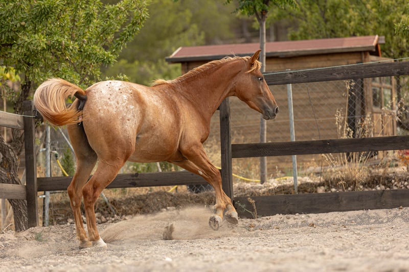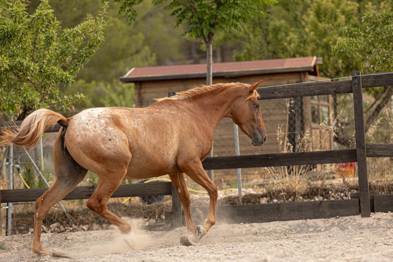 ✨ ARIZONA - Veulen met een ziel van een metgezel en een enorm hart ✨ Wij presenteren je Arizona, een jonge merrie geboren in maart 2023, een kruising van Appaloosa met KWPN- en Spaanse bloedlijnen. Met een Spaans paspoort en de mogelijkheid tot inschrijving in het aanvullende register van ANCADES (Spaans Sportpaard). Arizona valt op door haar diep menselijke karakter. Ze is extreem aanhankelijk, nieuwsgierig, sociaal en houdt ervan om bij mensen te zijn. Ze geniet ervan om in het middelpunt van de belangstelling te staan en houdt van constante interactie, altijd met die positieve energie die je vanaf het eerste moment verovert. Ze begint de wereld op een zachte en respectvolle manier te verkennen. Ze kent de basisvaardigheden: • Ze laat zich zonder problemen borstelen en wassen • Geef haar correct de hoeven • Ze gedraagt zich perfect bij de hoefsmid (bezoek elke 6 weken) • Ze is ontwormd en gevaccineerd • Ze kan rustig vastgebonden worden • Ze weet hoe ze aan de longe moet lopen en luistert naar stemcommando’s. • Ze gaat wandelen aan de lijn in het bos Zoals al onze paarden is Arizona opgevoed in een omgeving waar respect, vertrouwen en emotioneel welzijn voorop staan. Onze training begint vanaf de grond, waarbij we een echte band creëren tussen paard en persoon. Natuurlijke en complete voeding: • Hooibaal 24 uur per dag beschikbaar • Alfalfa • Alpenkruiden cobs • Mash • Mengsel van verschillende graanvlokken Haar kastanjebruine vacht en blonde manen geven haar een zeer speciale schoonheid, maar wat echt betovert is haar manier van kijken, haar nabijheid en haar verlangen om tijd met jou door te brengen. Arizona is perfect voor iemand die een verhaal vanaf het begin wil beginnen: met rust, met liefde en met de hoop een gezonde en diepe relatie op te bouwen. Als je haar beter wilt leren kennen, neem dan contact met ons op via telefoon of WhatsApp. We geven je graag meer informatie, foto's of video's.