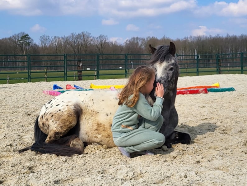Onze lieve Puzzle is de kinderpony bij uitstek. Ze heeft de looks en het karakter. Ze is bij ons geboren en niks is haar te gek. Super geduldig en nergens van onder de indruk. Ze heeft met onze zoon al een hele hoop plezier beleefd. Onze zoon heeft een voorkeur voor western rijden, maar volgt ook gewoon wekelijks de dressuurles op de ponyclub. Dus trailerrijden is voor haar de normaalste zaak van de wereld. Wij hebben ook al met haar in het tuig geoefend en dat doet ze ook braaf. Ze is zelfs al eens mee op een western wedstrijdje geweest, maar zou ook voor dressuur, mennen of springen geschikt kunnen zijn. Haar vader komt uit een bekende Engelse springsport ponylijn. Op buitenrit is zij heel braaf en kan zowel voorop als achteraan. We vinden het echt heel erg jammer dat we moeten kiezen, maar omdat we haar moeder ook nog hebben zijn 2 pony's gewoon te veel voor mijn zoon. Puzzle verdient het om een eigen ruitertje te krijgen om zo nog veel meer avonturen te gaan beleven!