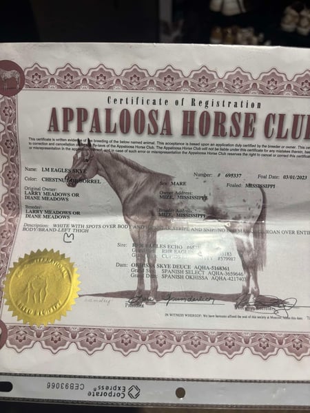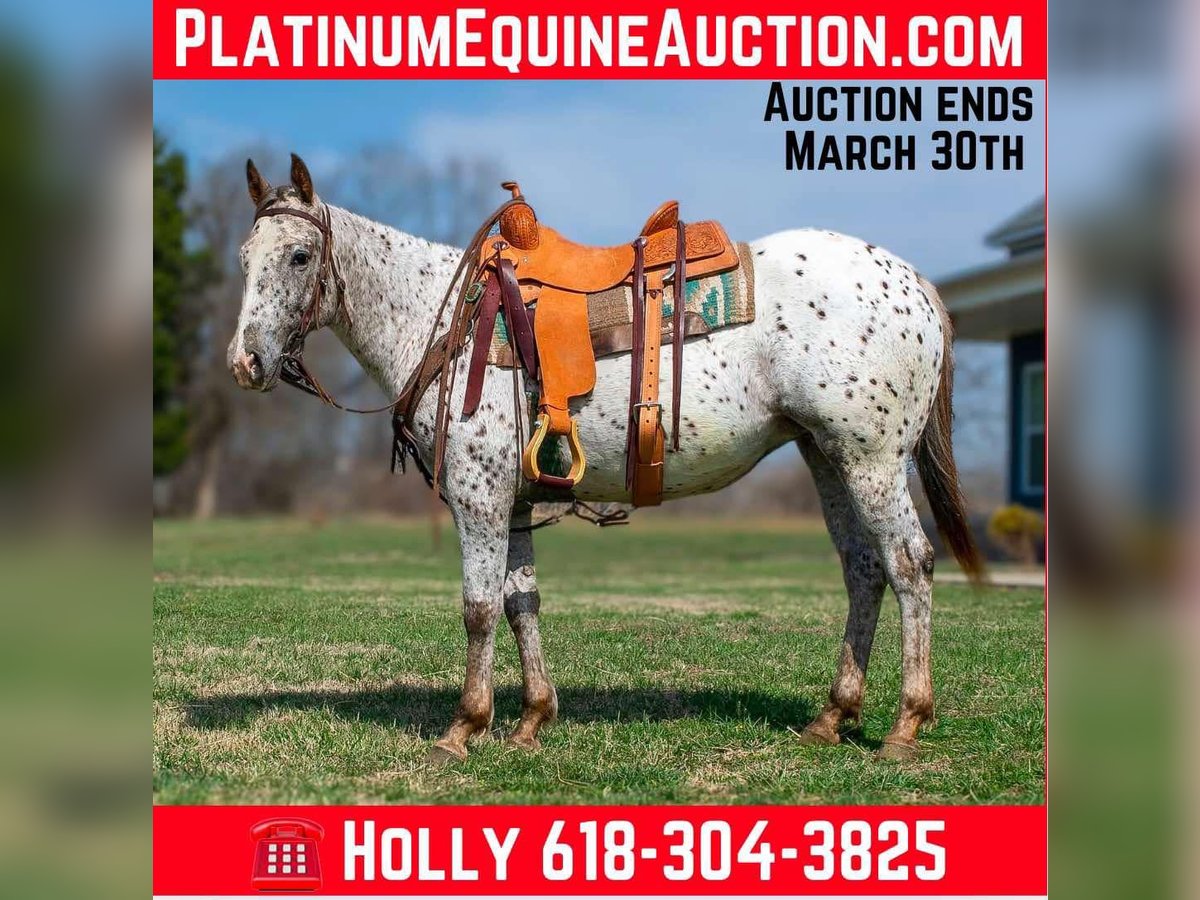 ONLINE AUCTION Place your bids at www.PlatinumEquineAuction.com Starting Bid $3500 Auction ends March 30th, 2025 Need a new saddle? Check out White Rock Saddles on our website or Facebook! I want to show you a QUIET GENTLE 2 year old registered Appaloosa Filly we call Abby! She stands 14.1 and cute as a button! You don’t need to be a horse trainer to finish this filly with 60 days riding on her. She is so pleasing and willing with everything you show her! We have had the privilege to ride and enjoy her this past few months! No buck or silliness with her and the perfect size for all you trail riders! Has a nice natural low headset that will stay consistent while riding! She lopes both ways while taking both leads! Abby will cross anything on the trails with confidence. We have had the four wheelers and dogs around her and no scare at all. There isn’t anything bad I can say about this filly she is so easy to be around. She will ride the same in the arena, out in an open field or down the road. Saddles quietly, stands like a statue while bathing and no lunging required! We are giving a guarantee on this filly if you don’t like her send her back! 100% sound and open to PPE at buyers expense. Come try her out in person! Buy with confidence! Call Holly Griffin 618-304-3825 with any questions. Located in Greenville, KY. ONLINE AUCTION Place your bids at www.PlatinumEquineAuction.com Starting Bid $3500 Auction ends March 30th, 2025 Need a new saddle? Check out White Rock Saddles on our website or Facebook!