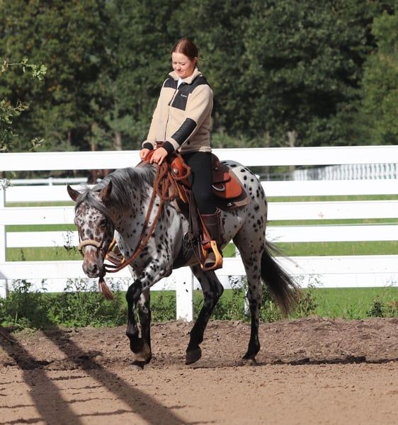 Met Pixie worden dromen werkelijkheid! Pixie zoekt een liefdevol thuis voor altijd. Ze is een zeer loyale merrie met een vriendelijke en ontspannen aard. Ze leert tot nu toe snel, is nieuwsgierig, rustig en zelfverzekerd. Met andere paarden in de kudde kan ze zich tot nu toe altijd zonder problemen aanpassen. Pixie is een absoluut betoverende Appaloosa-merrie in een adembenemende kleur, die alleen in zorgvuldige handen geplaatst moet worden. Ze is van nature een zonnestraal die veel vertrouwen geeft, maar ook speels kan zijn en altijd klaar staat voor een avontuur. Ze heeft plezier in het werk, maar houdt er ook van om verzorgd en verwend te worden. Ze geniet van de aandacht van haar begeleiders en is al gewend aan ontspannen buitenritten door bos en weiland. Vooral op zonnige dagen heeft ze plezier in water en spettert graag. Vanwege haar zachtaardige karakter en haar heldere hoofd toont ze zich ondanks haar jonge leeftijd al zeer betrouwbaar en goed hanteerbaar. Pixie is perfect geschikt voor western- of vrijheidsdressuur, recreatieruiters en in principe ook voor herintreders in de paardensport. Met een schofthoogte van ongeveer 1,53 m toont ze zich tot nu toe nieuwsgierig, ontspannen en onbevreesd tegenover alledaagse geluiden zoals tractoren of machines op de boerderij. Ze is een open jonge ruin die altijd nieuwe dingen wil leren. Pixie loopt barhuf en komt tot nu toe goed zonder hoefijzers uit. Pixie is al gewend aan vrijheidsdressuur binnen het kader van Natural Horsemanship. Door haar rustige, oplettende aard heeft ze snel de basisprincipes van vrijheidsdressuur onder de knie gekregen. Vrij volgen of gerichte handwisselingen naar haar mens toe zijn voor Pixie een eenvoudige taak. Wij willen voor Pixie een nieuw thuis vinden waar ze zich prettig voelt, verder uitgedaagd en gestimuleerd wordt en de liefde krijgt die ze verdient. Daarom wordt ze uitsluitend in goede handen geplaatst en persoonlijk naar haar nieuwe stal gebracht, tegen een reiskostenvergoeding. Indien gewenst, kan een aankoopkeuring geregeld worden. Telefonisch zijn wij bereikbaar onder 0162-4348386 – geen e-mails. ⸻ Wij nemen graag de tijd voor proefritten en kennismaking, zodat alles rustig en uitgebreid kan plaatsvinden. Om te voorkomen dat alleen serieuze kopers contact opnemen, vragen wij een kleine bijdrage van €50, die bij de aankoop van het paard uiteraard verrekend wordt. Hartelijk dank voor uw begrip!