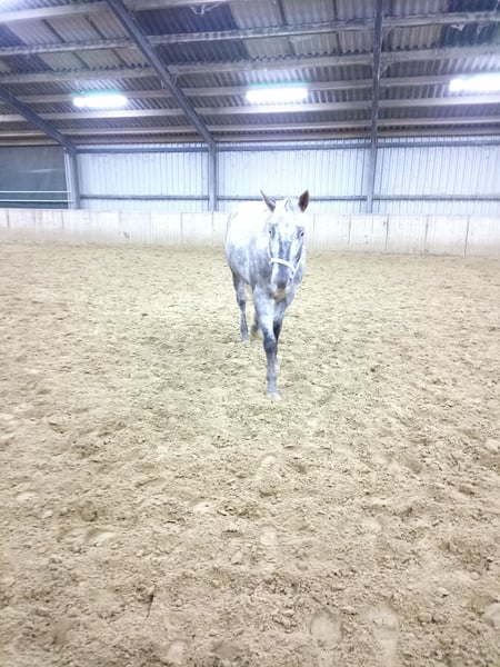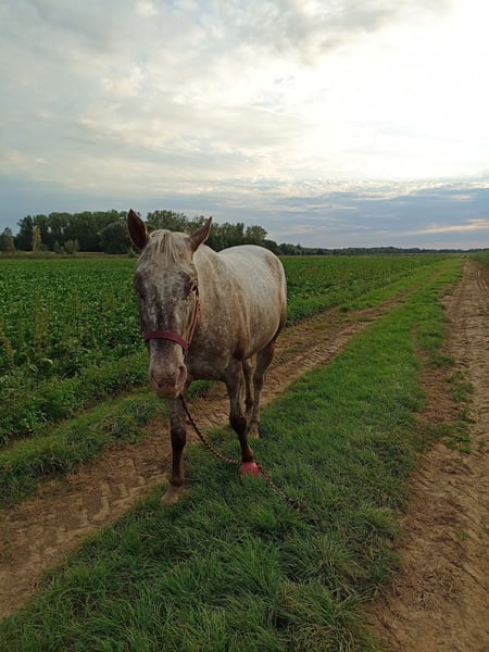 A very gentle and calm Appaloosa mare. She has a sweet character when interacting with people and does not display mare-like behavior within the herd. She is well-behaved and calm on outdoor rides. She has an aptitude for cutting and also enjoys groundwork sessions. She possesses ground skills under saddle. If genuinely interested, more information can be provided.
