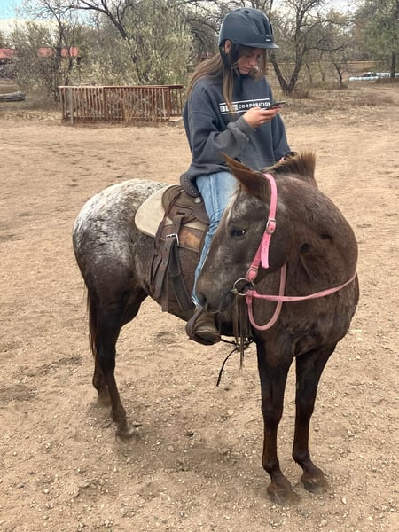 ONLINE AUCTION Place your bids at www.PlatinumEquineAuction.com Starting Bid $3500 Auction ends December 8th, 2024 Need a new saddle? Check out White Rock Saddles on our website or Facebook! Pixie is a go getter!! She is a 13.2H, 6 year old mare that is sweet, kind, honest and absolutely loves her job!! I have never seen a pony that loves to work like this one, you can take her into the mountains for a day of work and she’ll come back still ready for whatever you throw at her. Pixie is surefooted and as bombproof as they come in town! She has seen crowds, bikes, strollers, bands, dogs etc! She has been ridden through the coffee drive thru on occasion and absolutely loves any outing you take her on! Pixie has been through the gymkhana patterns, knows western pleasure and is started on hunter jumper and the start of some dressage. She has an amazing tuck and her athleticism is unmatched. She is a fancy mover with a beautiful walk,jog, lope and a very pretty headset/collection. She has a sliding stop and the start to a neckrein. This pony is not scared of tarps, bags, flags etc! She would make an awesome drill team mount. Pixie is also safe for young riders and is a great teacher as she has never bucked, bolted, reared or had any funny business! She is the perfect size for kids and small adults to ride! Pixie loves water, loads easily, great for the vet and farrier and will stand tied all day. Come check this sweet girl out! Located in Fort Collins, CO. Contact Dynamite Horses Thea 970-632-3644 with any questions. ONLINE AUCTION Place your bids at www.PlatinumEquineAuction.com Starting Bid $3500 Auction ends December 8th, 2024 Need a new saddle? Check out White Rock Saddles on our website or Facebook!