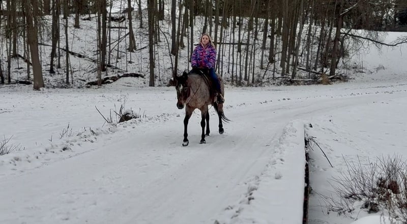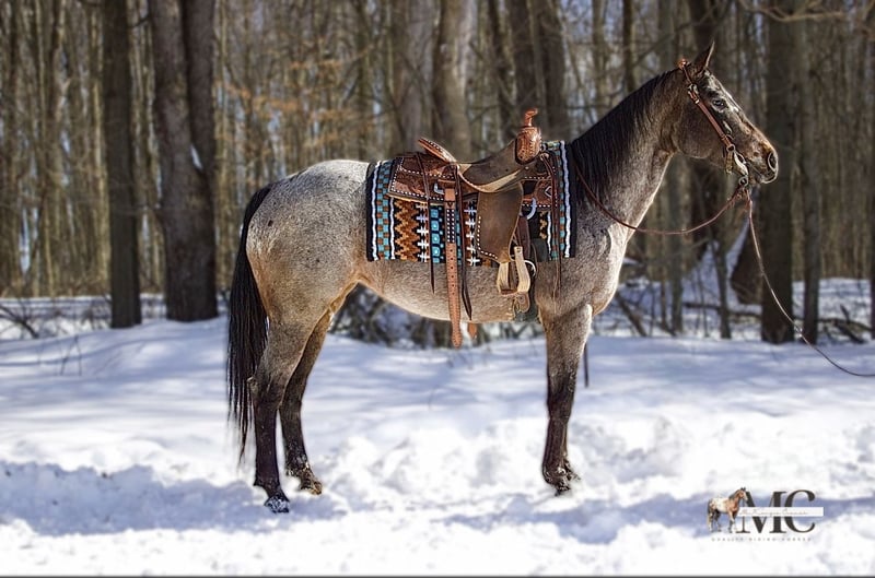 ℳ𝒶𝓇𝒸𝒽 ♦️𝐑𝐈𝐃𝐄𝐑'𝐒 𝐂𝐇𝐎𝐈𝐂𝐄♦️ Happening now thru MONDAY | MARCH 9th - Available EXCLUSIVELY on HorseBid's website! For more details and to register visit: www.Horsebid.com CONSIGNOR CONTACT: MC Quality Riding Horses 330-307-0323 LOCATION: North Bloomfield, OH BREED: Appaloosa REGISTERED: No REGISTERED NAME: Mocha COLOR: Bay Roan HEIGHT: 14.2 AGE: 8 GENDER: Mare Mocha is an 8-year-old grade Appaloosa mare standing 14.2 hands. She’s confident, seasoned, and takes care of her rider every step of the way. Mocha is a true point and go horse with zero spook. She’s been ridden straight from the house, through town, around traffic and farm equipment, and even to the lake where she absolutely loves the water. She has also been used to gather cattle out in Nebraska and has proven to be calm, reliable, and handy in real world working situations. She loves arena work and is incredibly smooth to ride. Mocha picks up both leads effortlessly, has a very soft mouth, and is extremely responsive to cues. She moves along at a comfortable, medium-soft pace that you can ride for hours. Mocha has been ridden English and Western and has been started over cross rails with zero hesitation. She will go wherever she’s pointed. She’s confident, and willing. Mocha loves to have a job. This mare is an absolute sweetheart and loves kids. She’s kind, patient, and safe, making her suitable for any level of rider, from beginners to more experienced riders wanting a trustworthy partner. On the ground, she’s easy to handle, stands quietly for grooming and tacking, and is a pleasure to be around. Mocha has been exposed to cows, farm animals, traffic, noise, and new environments, making her an excellent choice for a family horse, trail rider, arena rider, trail obstacle, or lower-level English prospect. She is barefoot, an extremely easy keeper, and 100% sound - the kind you can enjoy without extra maintenance or surprises. Shipping can be arranged anywhere in the U.S. Please do not hesitate to reach out to McKenzie with any questions!