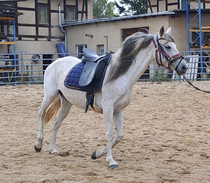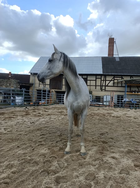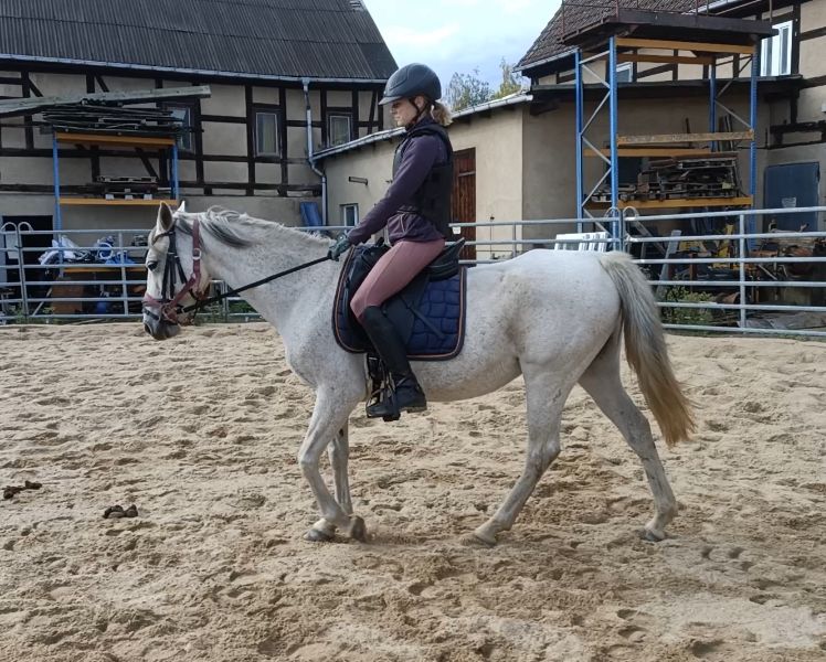 Questa bella signora ha avuto un puledro fino a poco tempo fa e ora cerca un nuovo compito. È completamente sana e ha solo una vecchia cicatrice sulla gamba che non la limita e viene considerata un difetto estetico. Per il resto, è assolutamente tranquilla e difficilmente si lascia disturbare, sia nel maneggio che nel traffico stradale. Attualmente viene alimentata e presto sarà preparata per la vita come cavallo da monta. È anche possibile un ulteriore percorso come fattrice. Non porta con sé documenti di genealogia, ma ha un passaporto spagnolo originale, è vaccinata e sverminata. AKU e trasporto sono negoziabili.