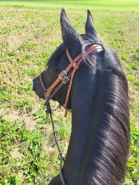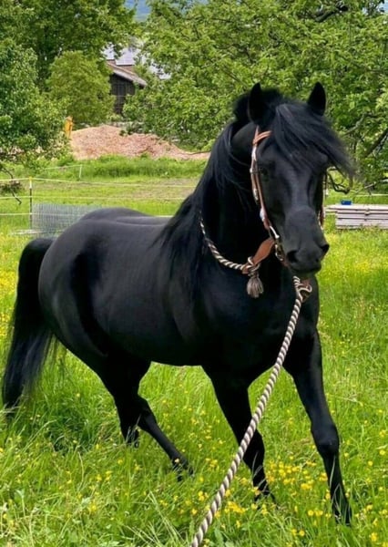 Wunderschöner Vollblutaraber-Wallach (Rappe), 12 Jahre – Freizeit- & Wanderreitpferd Zum Verkauf steht ein bildhübscher 12-jähriger Vollblutaraber-Wallach in der seltenen und eleganten Farbe Rappe. Mit seinem ausdrucksstarken, Erscheinungsbild und seiner tollen Präsenz ist er ein echter Hingucker. Er ist 2014 geboren und kam 7-jährig zu mir. Er war damals so gut wie roh und ich habe ihn zum Freizeit-Partner ausgebildet. Er ist kerngesund- sein Bewegungsapparat funktioniert einwandfrei und er hatte nie Probleme. Allgemein ist er eher der gemütliche Typ, obwohl er ein Vollblüter ist. Er ist bei Lektionen sehr motiviert und eifrig dabei, wenn ihm eine Aufgabe Spaß macht und er verstanden hat, um was es geht. Besonders viel Spaß hat er an ,,Denk-Aufgaben". Er ist kein Anfängerpferd, da er schon manchmal frech sein kann und auch mal klare Ansagen braucht. Gelegentlich zeigt er einen kleinen Dickkopf und testet auch mal seine Grenzen. Aber eher bei Reitbeteiligungen, die nicht täglich mit ihm arbeiten. Er bindet sich eng an „seinen“ Menschen und zeigt sich im Alltag aufmerksam. In der Herde ist er eher ranghoch, aber verträglich. Unter dem Sattel überzeugt er mit tollen, sehr angenehm zu sitzenden Gängen. Im Gelände geht er in der Gruppe sehr zuverlässig und macht viel Freude. Alleine ausreiten mag er nicht so gerne – hier braucht er Sicherheit durch seinen Reiter. Er läuft barhuf, bei längeren Ritten mit Hufschuhen vorne. Er wird bei uns im Bambini- bzw. Kinderreiten eingesetzt und zeigt sich dort geduldig. Wichtige Infos: 12 Jahre alt, Stockmaß: 1,46 m. Kein Gewichtsträger. Eher ranghoch, aber gut in die Herde integriert. Sattel und Zaumzeug können bei Interesse mit erworben werden. Nur in beste Hände abzugeben. Verhandlungsbasis. Bei ernsthaftem Interesse freue ich mich über eine Nachricht.