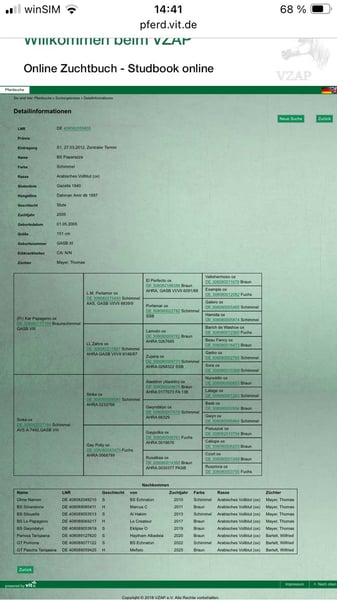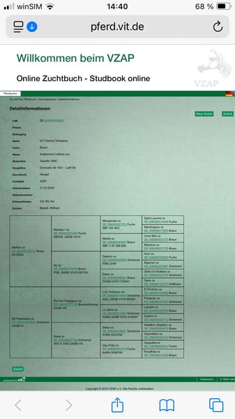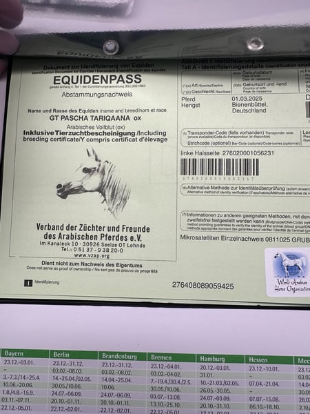 Achtung, Pascha zieht Mitte nächster Woche in die Aufzucht Region Diepholz. An alle interessierten könnte er bis dahin incl dem kommenden Wochenende bei mir in Bienenbüttel angeschaut werden. Nach dem Umzug dann dort. Falls er einen von den ganzen auf der Merkliste ernsthaft interessiert, wär ein anschauen vorher natürlich super, um einem Jährling einen zusätzlichen Umzug zu ersparen. Zum Verkauf steht er danach weiterhin, er hat super Potential. Wir haben aber schon 2 Hengste in Aufzucht und Training mit 4 und 6 Jahren zusätzlich zu unserem Deckhengst GT Pascha Tariqaana hat alles was man sich wünschen kann. Er wurde 3/25 geboren Sein Papa Mefisto war erfolgreich im Renn und Distanzsport sowie Dressur: / Springen unterwegs. Er selbst ist groß und kräftig, bewegungsfreudig, trittsicher und zeigt viel Balance. Seine Mutter kommt aus dem Black Smoke Gestüt, auf dem auch viele erfolgreiche Distanzpferde sind. Aktuell steht er noch bei mir in Bienenbüttel. Sollte sich jetzt kein Interessent finden, zieht er im Frühlung in die Aufzucht Region Diepholz um Bei Bedarf kann eine Transport organisiert werden Genetisch getestet ohne Erbkrankheiten PS es handelt sich um einen Vollblut Araber. Leider habe ich mich vertan und es lässt sich nicht ändern