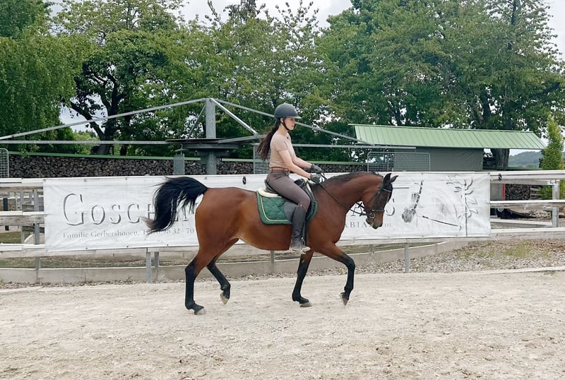 Nous proposons à la vente une magnifique jument arabe égyptienne, née en 2010. Timora El Mujid allie beauté et grâce à une excellente lignée, ce qui en fait un choix idéal pour l'élevage. Elle n'attire pas seulement le regard, mais convainc également par ses excellentes allures et son caractère amical et proche de l'homme. Elle est en bonne santé, bien soignée, vit dans un grand troupeau et est prête à déménager dans un nouveau foyer où elle pourra transmettre ses qualités. Débourrée, Timora est prête à apprendre et montre un grand potentiel pour de multiples utilisations dans le domaine des loisirs. Si vous êtes à la recherche d'un cheval convaincant aussi bien dans l'élevage que dans le travail quotidien, cette jument arabe pourrait être exactement ce qu'il vous faut. En cas d'intérêt, nous nous réjouissons de votre message pour vous donner de plus amples informations ou pour convenir d'un rendez-vous pour une visite. www.goschenhof-arabians.de