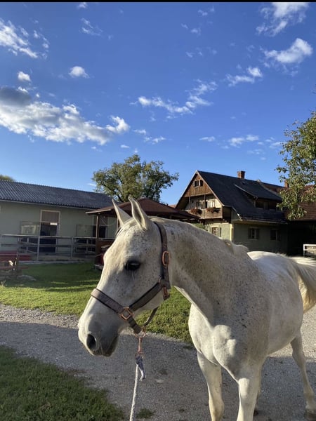 22-jähriger, sehr braver und verlässlicher Wallach. War früher Schulpferd und wurde im Therapiebereich eingesetzt. Daher absolut ruhig, menschenbezogen und im Umgang unkompliziert. Geeignet für Anfänger oder unsichere Reiter. Schmiede- und verladefromm, sowohl im Gelände als auch auf dem Platz zuverlässig. Wird in ein passendes, liebevolles Zuhause abgegeben.