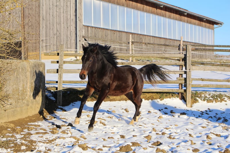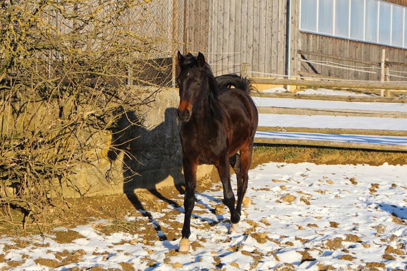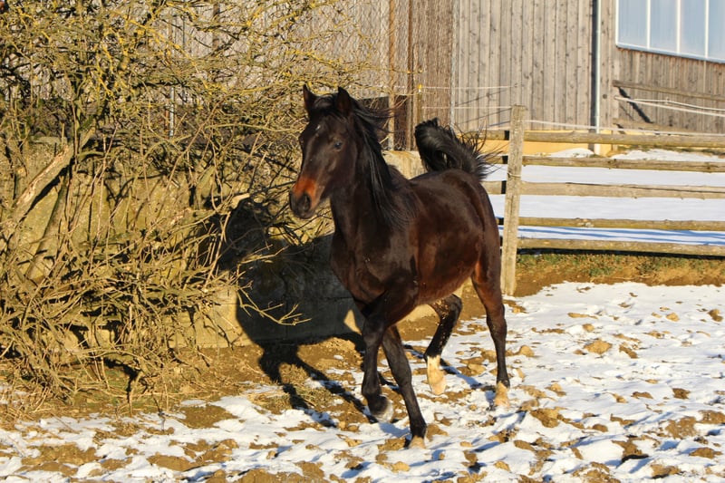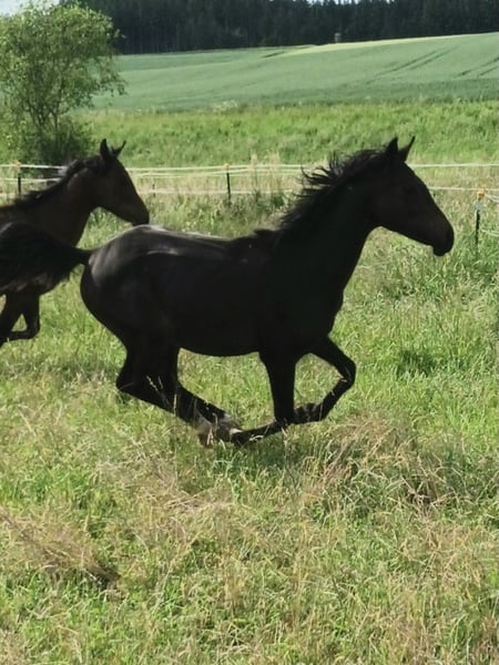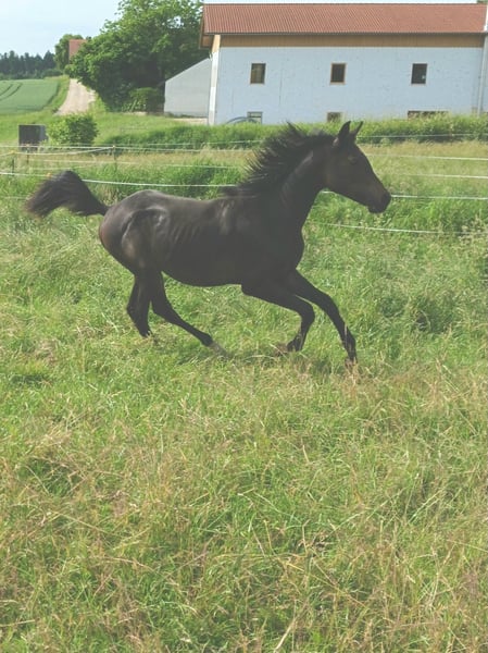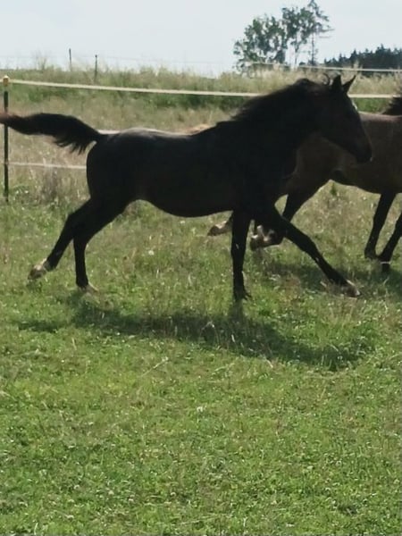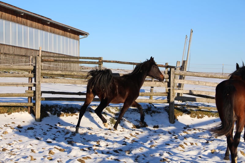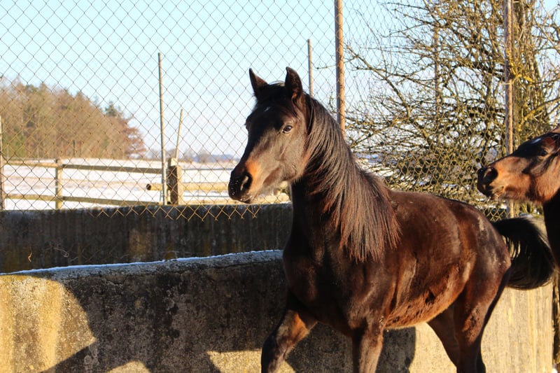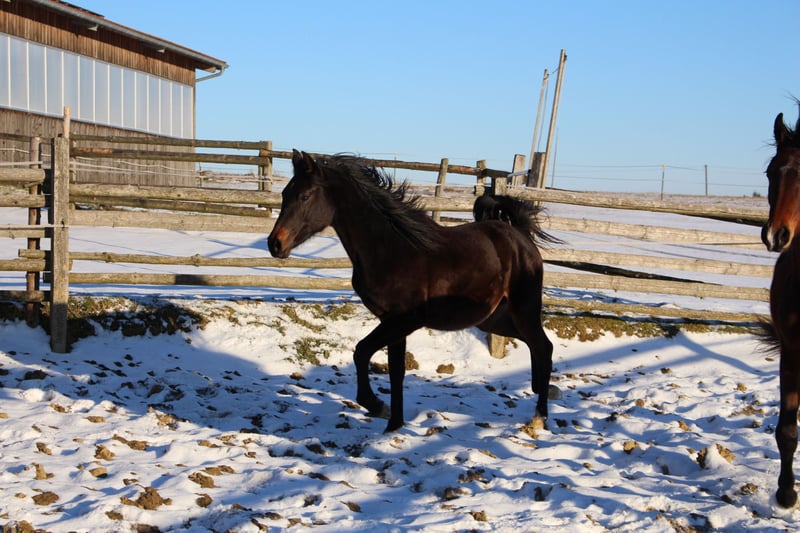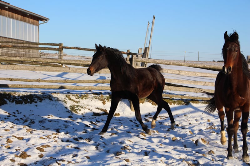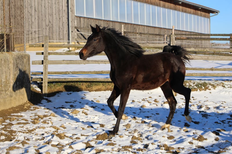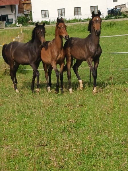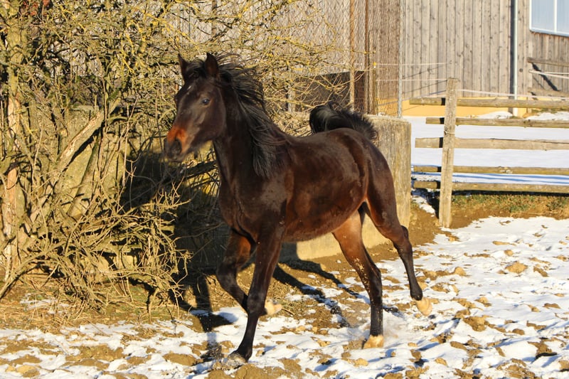 Babarello ShA est un poulain arabe shagya très actif et typé (bai) avec trois superbes allures. Il est très proche de l'homme. Babarello ShA a été primé par le ZSAA lors de la sélection des poulains et a reçu deux étoiles ! Sa mère "Babarella ShA" est une jument de prime d'association du ZSAA et a réussi son test de performance de jument avec une note globale de 7,22. Le père de Babarello est "Daru ShA", approuvé et testé en tant qu'étalon. Nous souhaitons vendre Babarello ShA en priorité pour l'élevage. Il pourrait rester encore un an chez nous pour continuer à l'élever. Il est exempt de CA et de SCID (testé). www.shagya-araber-hofstetter.de