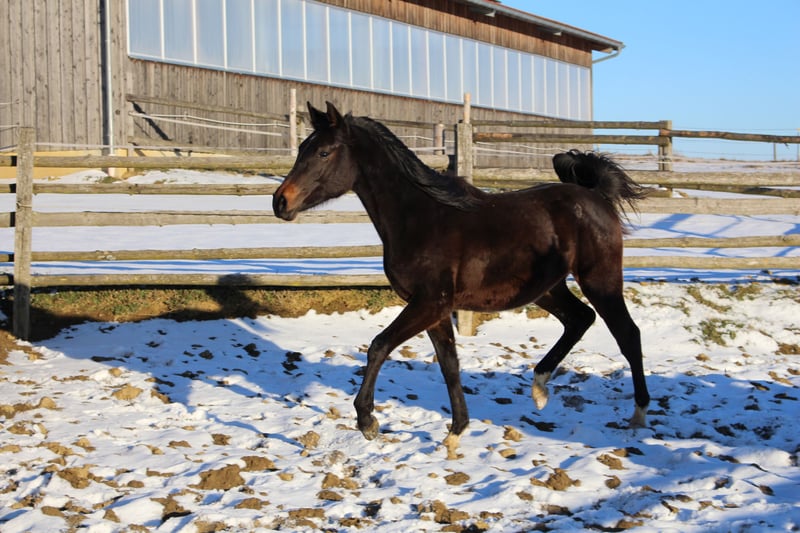 Babarello ShA is a very strong-moving, typey (bay) Shagya Arabian colt with three great basic gaits. He is very people-oriented. Babarello ShA was honored by the ZSAA at the foal inspection and awarded two stars! His dam "Babarella ShA" is an association premium mare with the ZSAA and passed her mare performance test with an overall score of 7.22. Babarello's sire is the licensed and stallion performance tested "Daru ShA". We would like to sell Babarello ShA primarily for breeding. He could stay with us for another year for further breeding. He is CA and SCID free (tested). www.shagya-araber-hofstetter.de