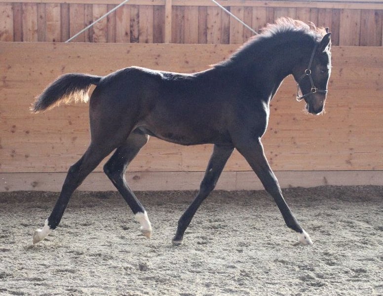 Babarello ShA is een zeer sterk bewegend, getypeerd (bay) Shagya Arabisch veulen met drie geweldige basisgangen. Hij is zeer mensgericht. Babarello ShA werd door de ZSAA op de veulenkeuring onderscheiden met twee sterren! Zijn moeder "Babarella ShA" is een ZSAA-premiemerrie en slaagde voor haar verrichtingsonderzoek met een totaalscore van 7,22. Babarello's vader is de gekeurde en op verrichtingen geteste hengst "Daru ShA". We willen Babarello ShA voornamelijk voor de fokkerij verkopen. Hij kan nog een jaar bij ons blijven voor de fokkerij. Hij is CA en SCID vrij (getest). www.shagya-araber-hofstetter.de