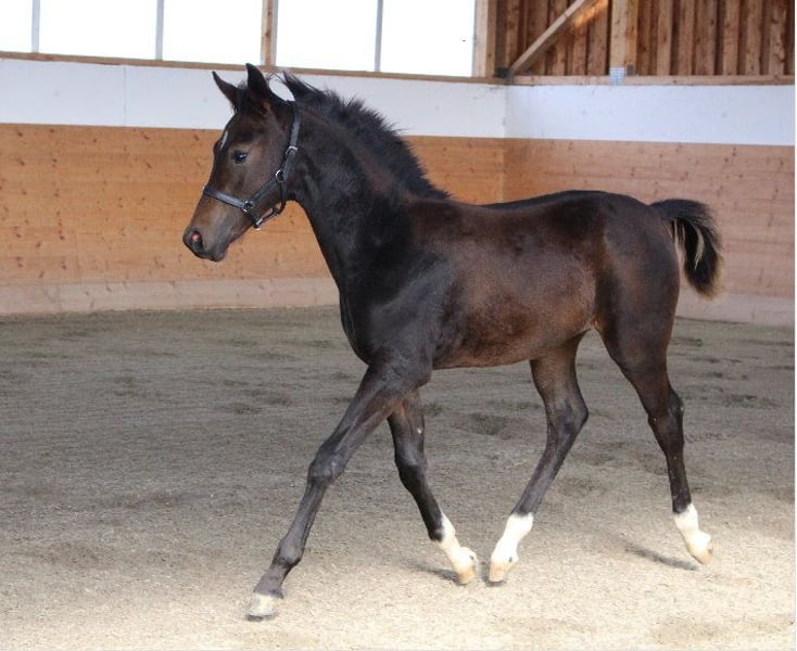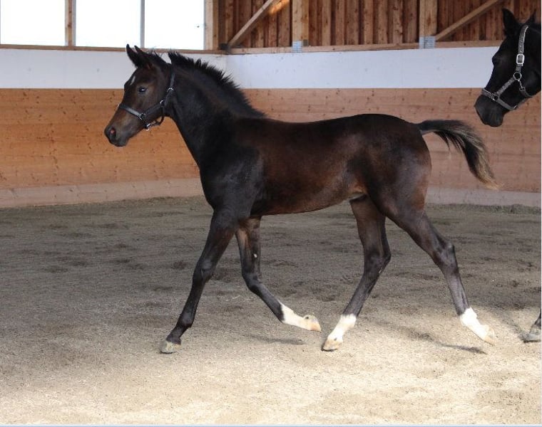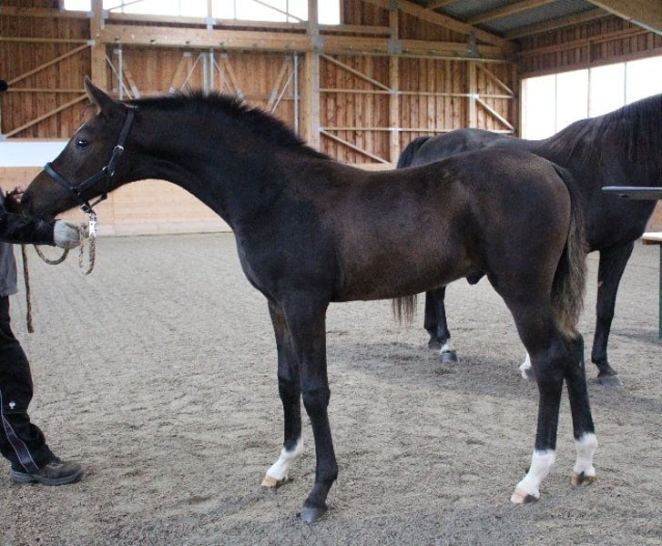 Brando ShA is een heel slim, getypeerd Shagya Arabisch veulen. Hij is absoluut mensgericht en beheerst het veulen ABC. Helaas kon Brando zich door een blessure niet optimaal tonen op de veulenkeuring en werd hij die dag slechts als "goed" beoordeeld. (draffoto's zijn van de dag erna) Zijn moeder "Bonita ShA" is een verenigingspremie merrie op de ZSAA en is geslaagd voor het verrichtingsonderzoek. Brando ShA's vader is de gekeurde en HLP (afstand) geteste "Tolstoj al Samarra" ShA. Brando ShA is CA en SCID vrij (getest). Brando ShA kan nog 1 jaar bij ons blijven voor de fokkerij. www.shagya-araber-hofstetter.de