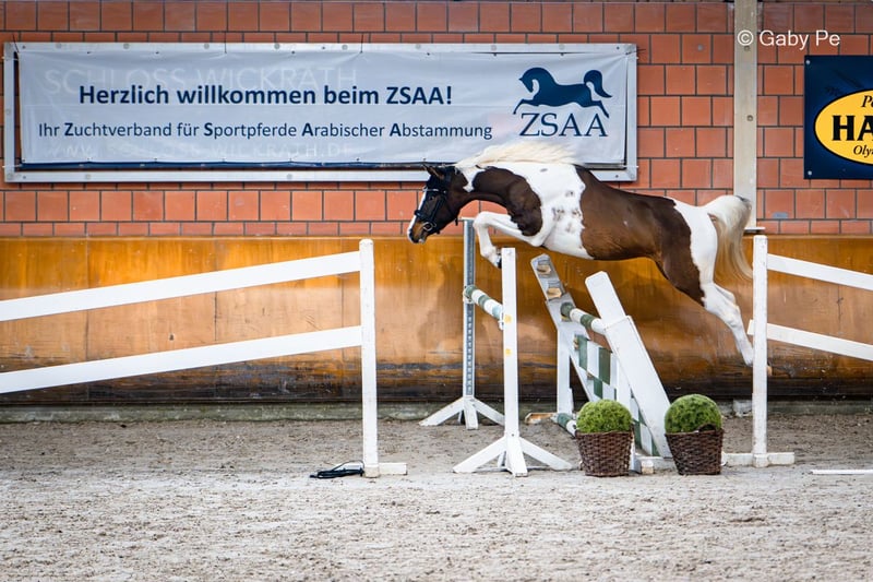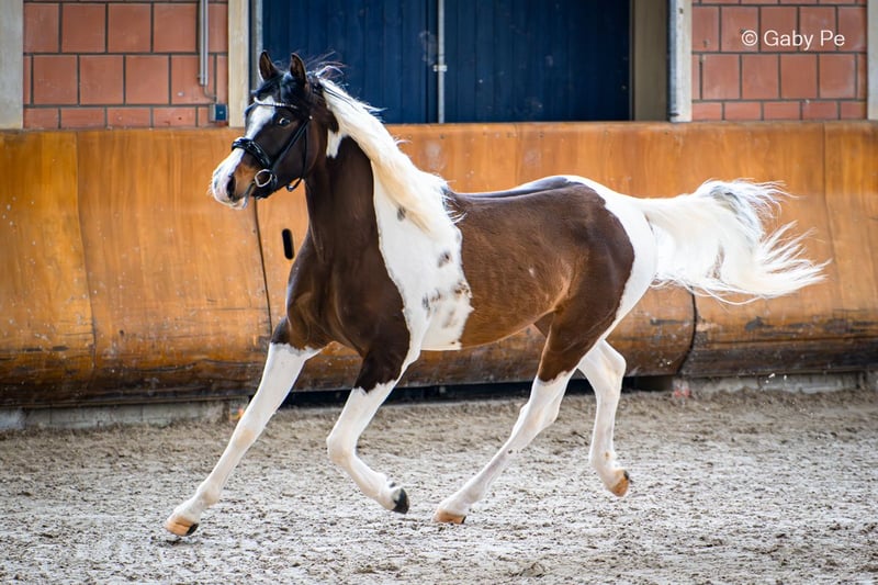 Deckanzeige! Pintabien mit 95,71% AV-Anteil, reinerbig Tobiano! Garantiert bunte Fohlen! Limited Hero ist ein ausdrucksstarker Junghengst, der mit Gelassenheit und Leistungsbereitschaft bei seiner Körung geglänzt hat. Neue Herausforderungen meistert er stets mit bravur und macht es seinen Menschen unglaublich leicht. Immer wieder sind wir stolz auf ihn und erfreuen uns an seinem großartigen Wesen. Hero lebt bis heute artgerecht im Herdenverband und zeigt sich stets ausgeglichen und freundlich. Er verfügt über eine gut an- und aufgesetzte Halsung, welche er in der Bewegung einzusetzen weiß. Der gut angelegte Widerrist, eine harmonisch geschwungene Oberlinie und eine gut bemuskelte Kruppe runden sein Gebäude an. Ebenso verfügt er über ein korrektes, solides Fundament und hat eine parallele und korrekte Gliedmaßenführung. Auf Typ, Gebäude und Fundament erhielt er zur Körung die Wertnote 8. Auch überzeugte er im Freispringen mit guter Manier, Fleiß und Übersicht, Wertnote 8. Die Erfolge seine Eltern „Limited Edition“ und „Painted Soleil“ (Prämienstute) sprechen für sich. Limited Hero steht im Natursprung und via Frischsamenversand zur Verfügung. Decktaxe: Pintabien/Partbred Araber und AV: 1000€ andere: 800€