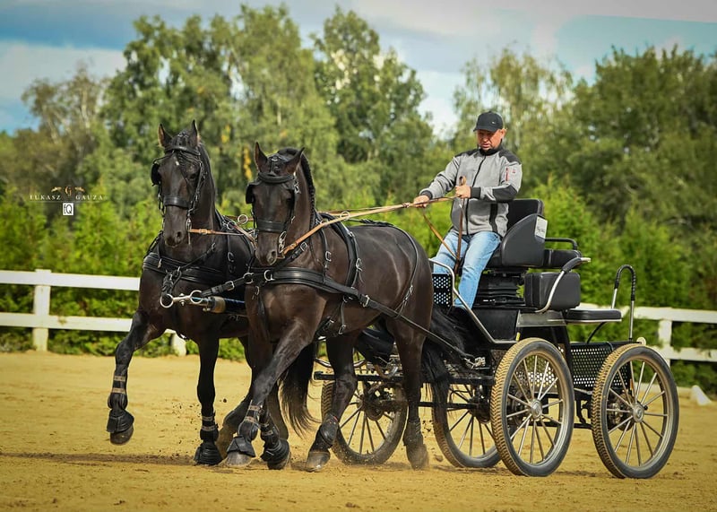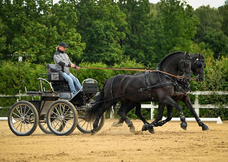 Zu verkaufen / FOR SALE Wir präsentieren eines der besten Pferde in unserem Stall - Robi (Robbe van de Kantweg) ist ein 12-jähriger arabo-friesischer Wallach, der in Belgien gezüchtet wurde und seit 9 Jahren bei uns ist. ➡️ Er geht hervorragend unter dem Sattel, ➡️ hat an Dressurwettbewerben teilgenommen, ist aber ➡️ auch ein sicheres Pferd für Ausritte. Seit 3 Jahren ist er Teil eines Vierergespanns und nimmt an internationalen Fahrwettbewerben, darunter Welt- und Europameisterschaften, teil. Er ist 🔝 gesund und unkompliziert im Umgang. Er eignet sich sehr gut für Paare oder als Einzelpferd. Interessierte Personen sind herzlich eingeladen, uns privat zu kontaktieren (WhatsApp oder Telefon 🇵🇱 +48 602 32 17 66) FOR SALE Eines der besten Pferde in unserem Stall - Robi (Robbe van de Kantweg) ist ein 12-jähriger arabo-friesischer Wallach, der in Belgien gezüchtet wurde und seit 9 Jahren bei uns ist. Er ist großartig zum Reiten und hat an Dressurwettbewerben teilgenommen. Seit 3 Jahren ist er Teil des Vierergespanns und nimmt an internationalen Fahrwettbewerben, einschließlich der Welt- und Europameisterschaften, teil. Er ist gesund und angenehm im Umgang. Er kann ein großartiges Pferd für Paare oder als Einzelpferd sein. Interessierte Personen sind herzlich eingeladen, uns privat zu kontaktieren (Messenger oder Telefon 🇪🇺 +48 600 336 762 🇵🇱 +48 602 32 17 66)