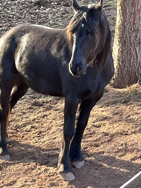 Diamante en bruto, yegua de 3 años, mezcla de árabe y frisón