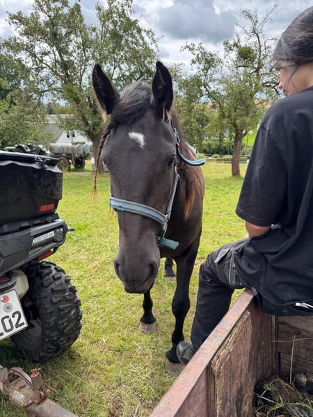 3 Jährige Friesenmix- Stute, absolut Liebes lernwillige junge verspielte Stute die eine Aufgabe sucht, Kinder saßen schon drauf, ansonsten Putzen im Hänger fahren kein Problem, ansonsten Roh!!! Keine Abgabe an Händler Vater und Mutter vor Ort, Offenstall
