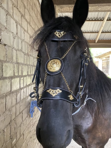 Elegante Arabofriese-Stute, geborene 2019, sucht ihren neuen Besitzer. Diese beeindruckende Rappstute vereint die edlen Linien des Arabofriese mit barockem Charme und einer imposanten Erscheinung. Mit einem Stockmaß von 160 cm präsentiert sie sich ausgewachsen und gut proportioniert, was sie zu einem echten Blickfang macht. Ihre barocke Konstitution verleiht ihr eine elegante Präsenz und eine beeindruckende Grundsubstanz. Die Stute ist gut geritten, zeigt eine solide Grundausbildung und überzeugt durch ihr freundliches Wesen sowie ihre Bereitschaft, Neues zu lernen. Dank ihrer rassetypischen Eleganz und ihres Charakters ist sie vielseitig einsetzbar – sei es im Freizeitreiten, im klassischen Dressurtraining oder für Zuchtzwecke. Diese Arabofriese-Stute ist ein echtes Highlight für jeden Pferdeliebhaber, der Wert auf Qualität, Charakter und eine beeindruckende Optik legt. Sie freut sich auf eine neue Familie, die ihre besonderen Qualitäten zu schätzen weiß.
