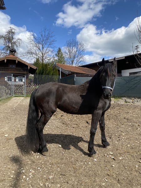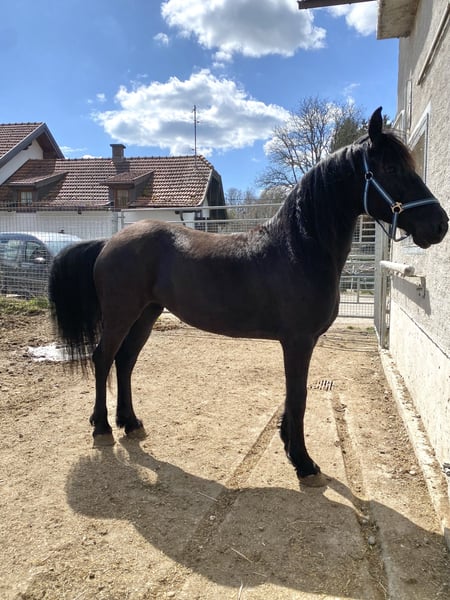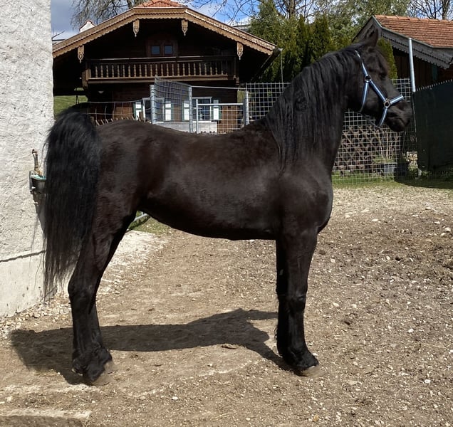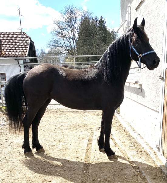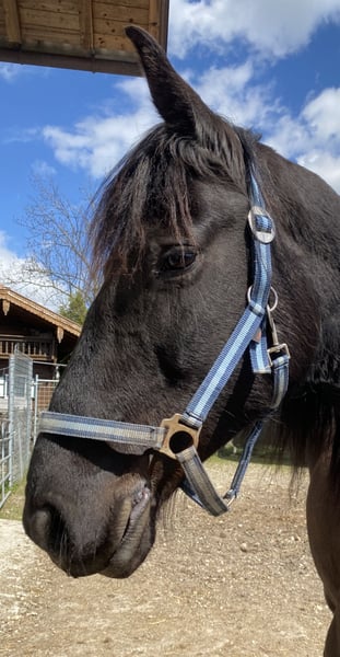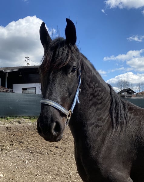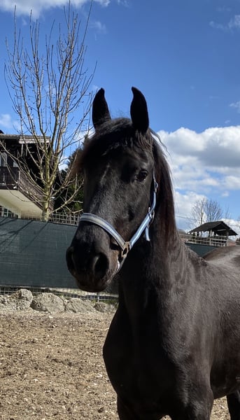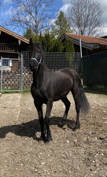 Zum Verkauf steht die 7-jährige Arabofriesen-Stute Gelina - eine hübsche, feinfühlige Stute mit viel Ausstrahlung und Entwicklungspotenzial. Ausbildungszustand: kein Fohlen-ABC und roh - sie ist aber Halfter führig. Geburtsdatum: 15.5.2018, Araboblutanteil: 29,69%, Stockmaß: ca. 157 cm. Gelina zeigt sich im Umgang freundlich und interessiert, ist dabei noch etwas zurückhaltend und sensibel. Sie ist roh und nicht ausgebildet, weshalb sie einen Platz bei pferdeerfahrenen Menschen sucht, die Freude daran haben, eine junge Stute von Grund auf zu fördern. Mit ihrer Abstammung und ihrem Charakter bringt sie die besten Voraussetzungen für eine vielseitige Zukunft im Freizeitbereich mit – sei es in der Bodenarbeit, im gebisslosen Reiten oder einfach als liebevolle Begleiterin. Hinweis: Als Fohlen hat sie sich an einem Karabiner an der linken Wange verletzt - sie hat dadurch absolut keinerlei Einschränkungen. Die Stelle ist verheilt - siehe letztes Foto. Bei Interesse oder Fragen freue ich mich über eine Nachricht.