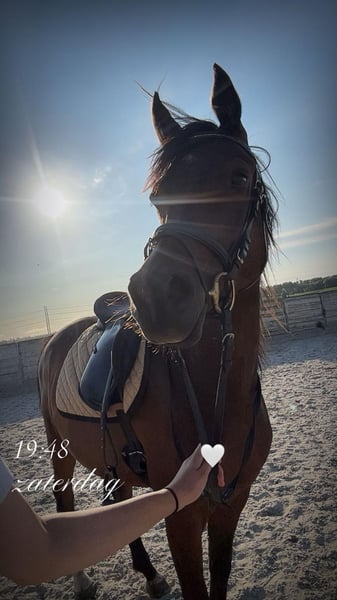 Onze 4 jarige ruin te koop omdat hij te klein is voor ons. Op dit moment is hij rond de 150 en is nog in de groei. Afgelopen half jaar hebben we hem ingereden, is niet bang en leergierig. Heel sociaal naar mens en paard. Arabisch stamboek en afstammeling van Basgier.